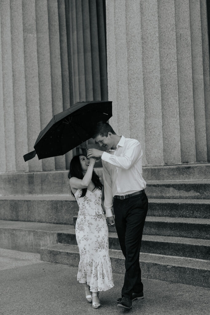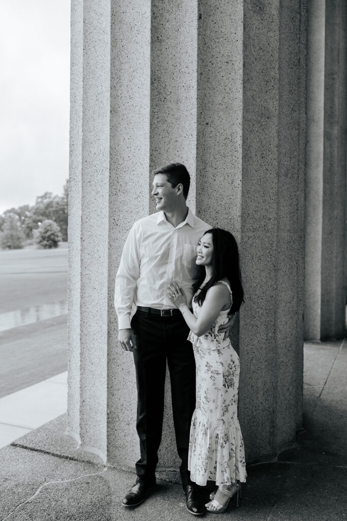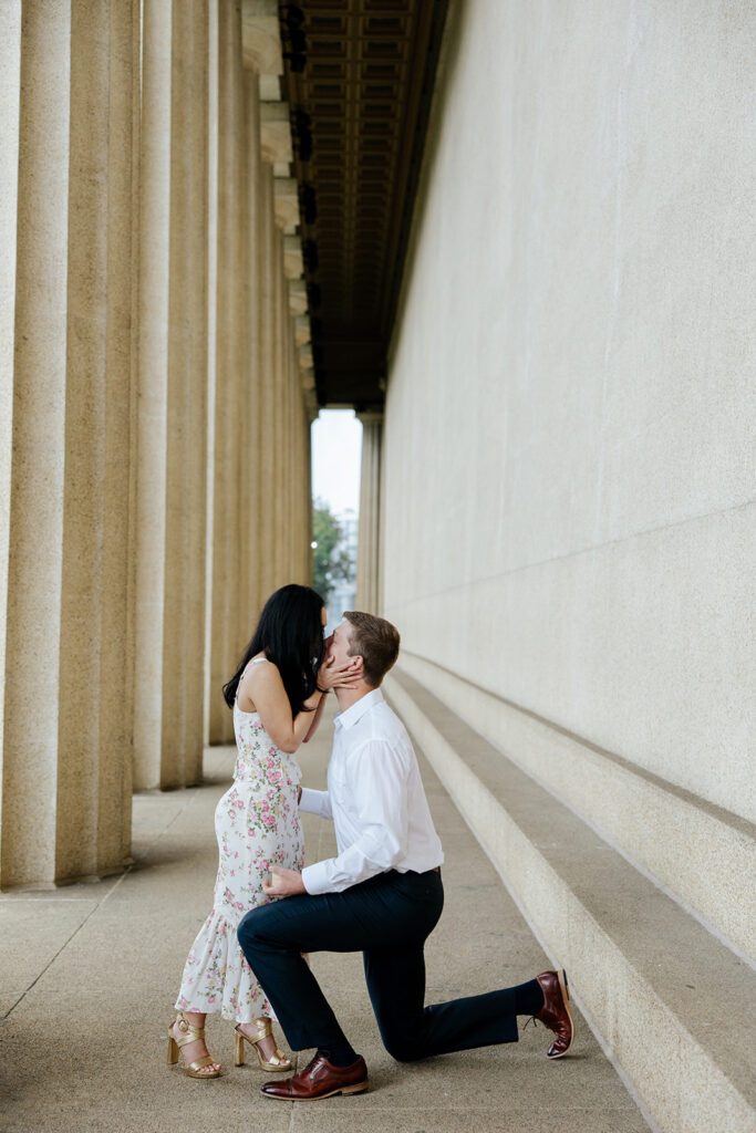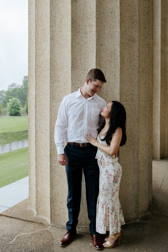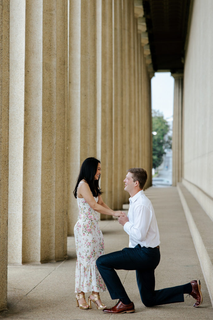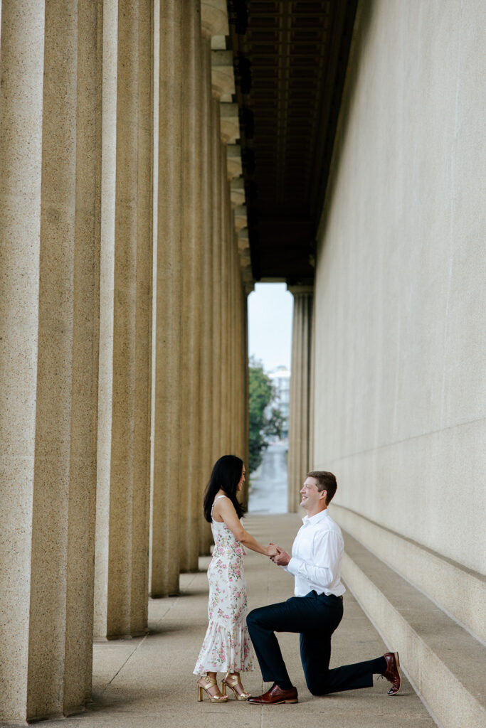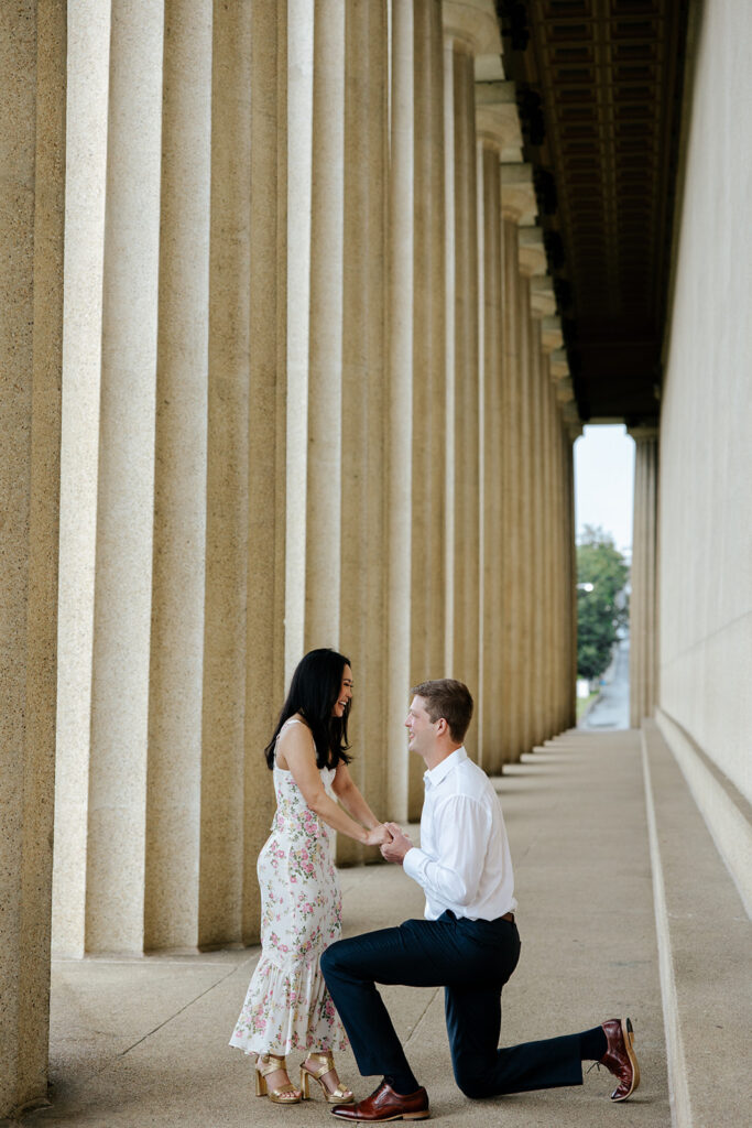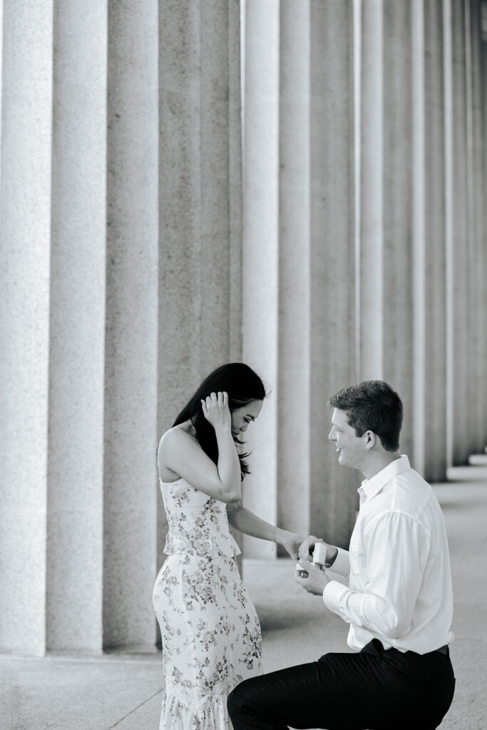 Jacob reached out to me in March about proposing to his then girlfriend, Addison. After discussing various options for locations, we finally settled on Centennial Park. With the classic pillars and potential of rain, these seemed like the perfect spot to get on one knee, especially since it holds sentimental value for these two as well, since they would walk here often.