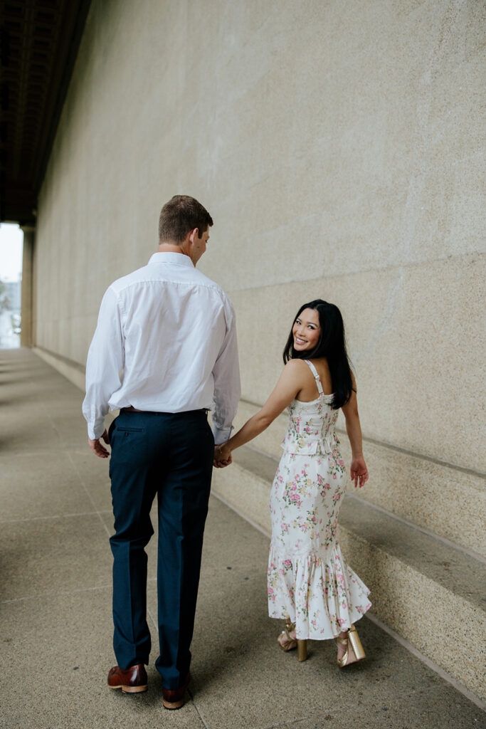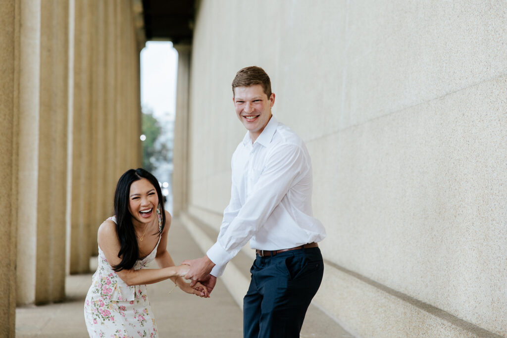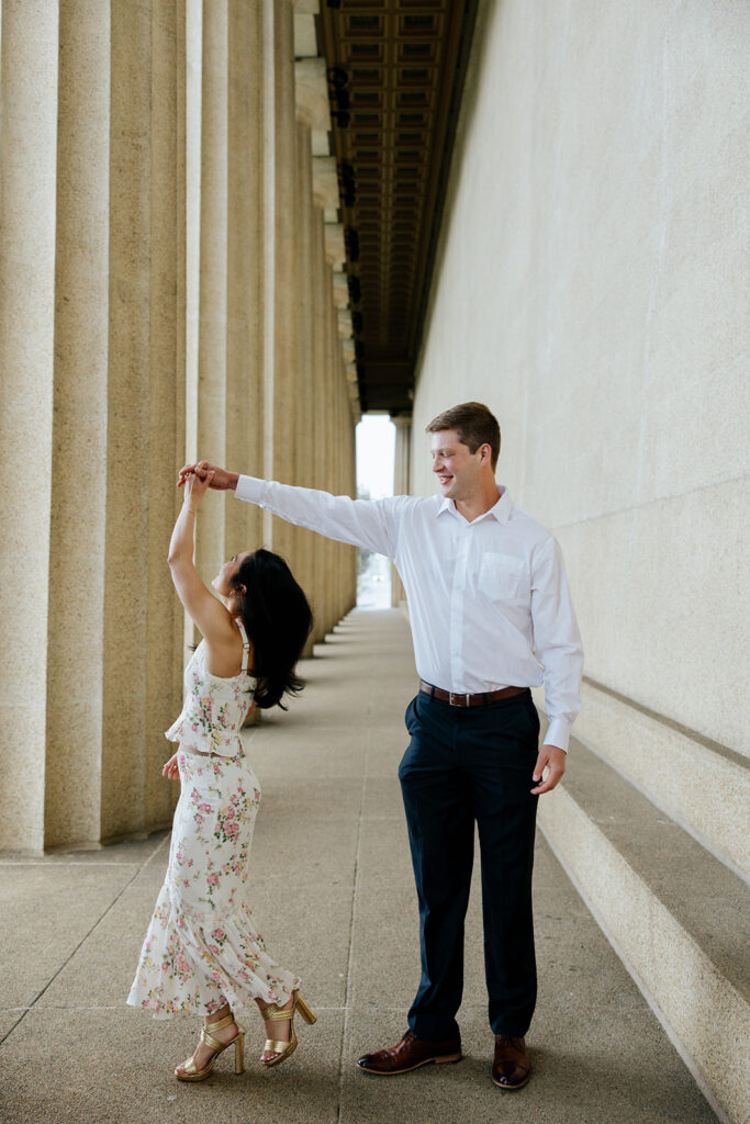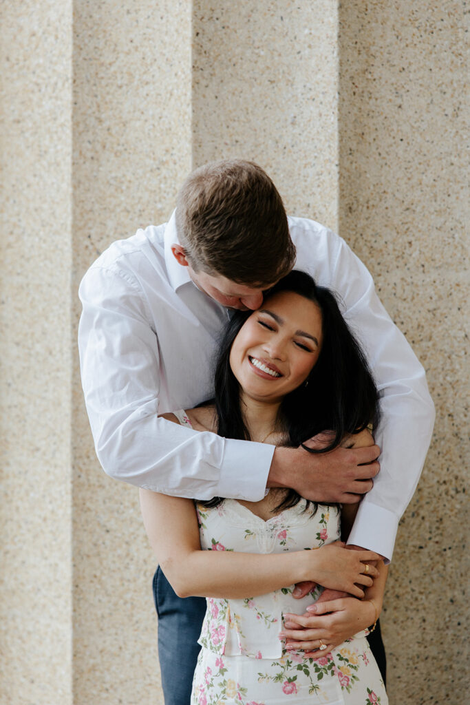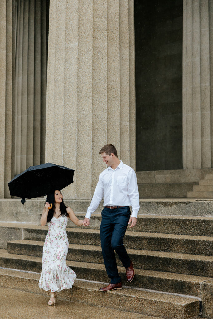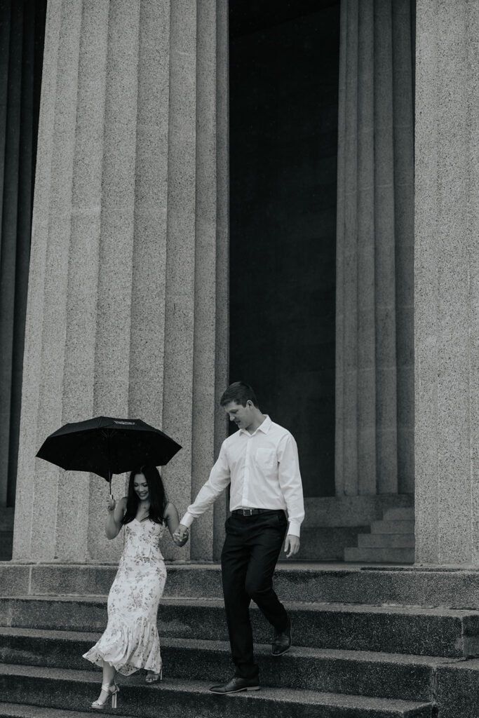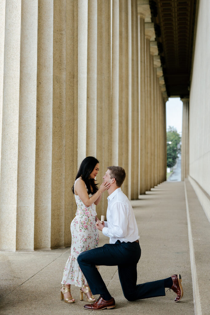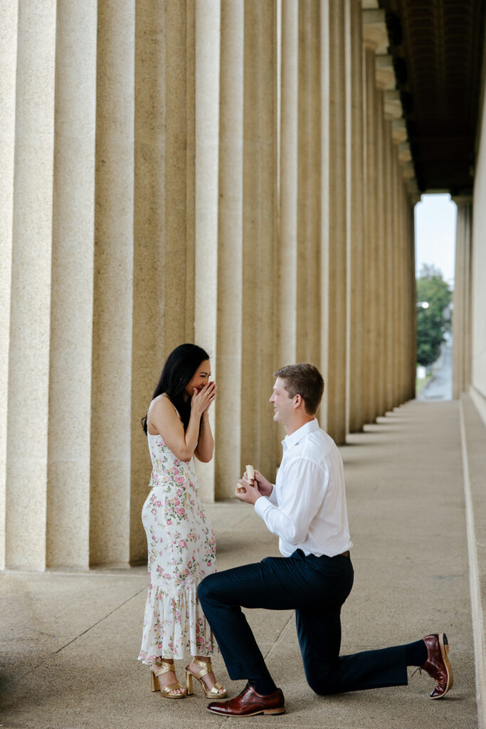 Jacob reached out to me in March about proposing to his then girlfriend, Addison. After discussing various options for locations, we finally settled on Centennial Park. With the classic pillars and potential of rain, these seemed like the perfect spot to get on one knee, especially since it holds sentimental value for these two as well, since they would walk here often.