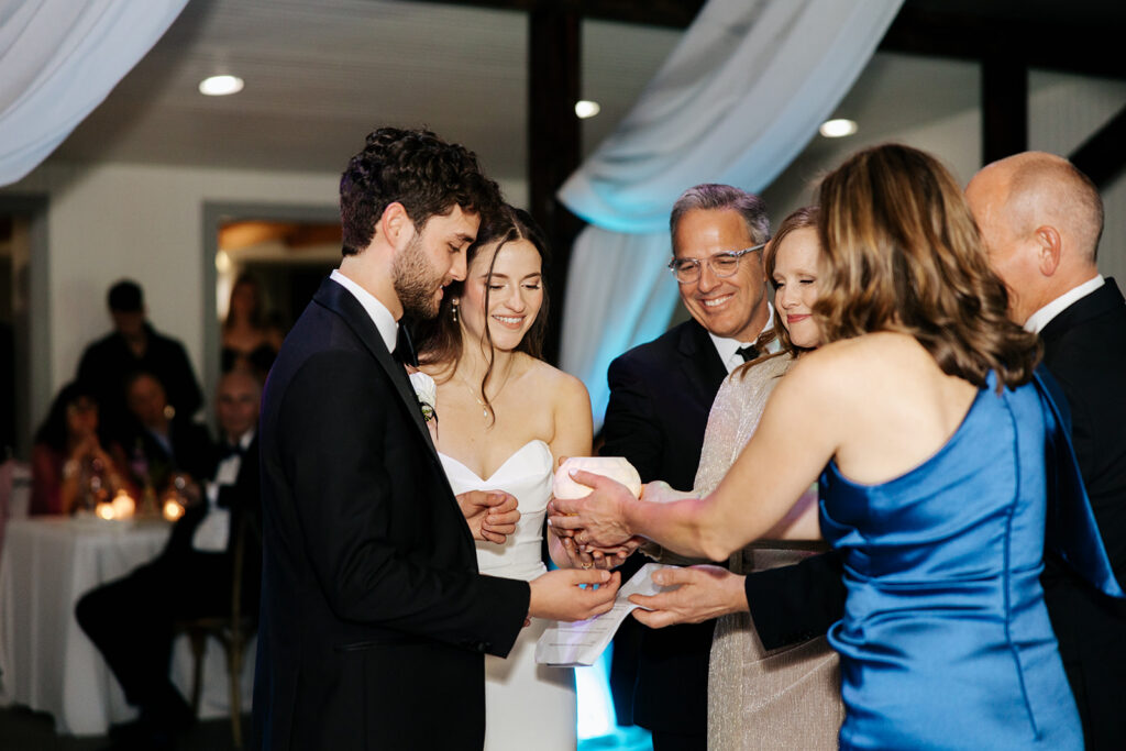 The day was so so lovely — Gabija’s friends helped her get dressed in the morning, and her and Sam had the sweetest (and giddiest) first look together. Everyone was dressed to the nines and just so excited to be there! Their ceremony was at sunset overlooking the lake (and they got to celebrate the Lord in their ceremony by breaking bread in communion) and the evening ended with dinner and cake in the beautiful reception hall!! The dance floor was full of children laughing and showing their best dance moves, and the toasts that were shared spoke so highly of both the bride and groom.