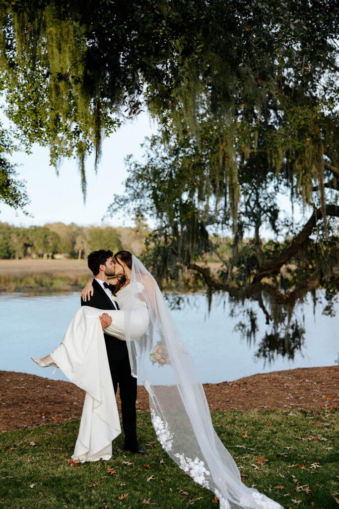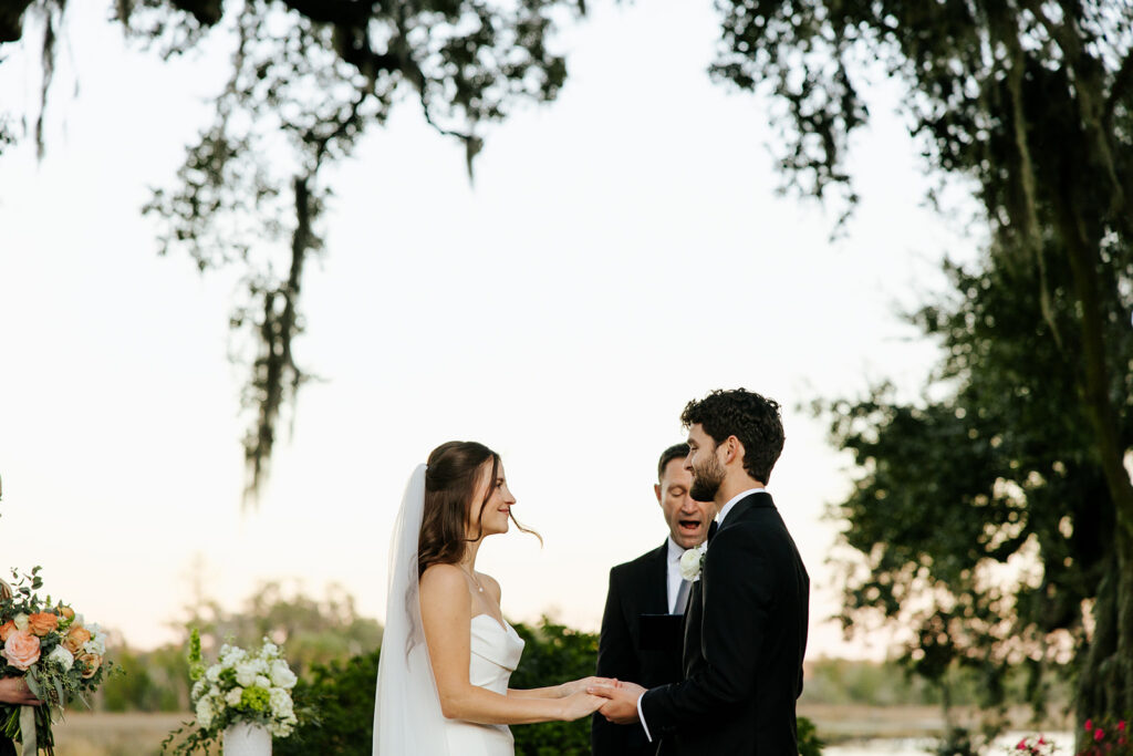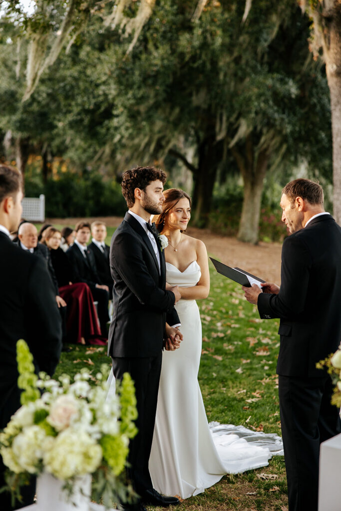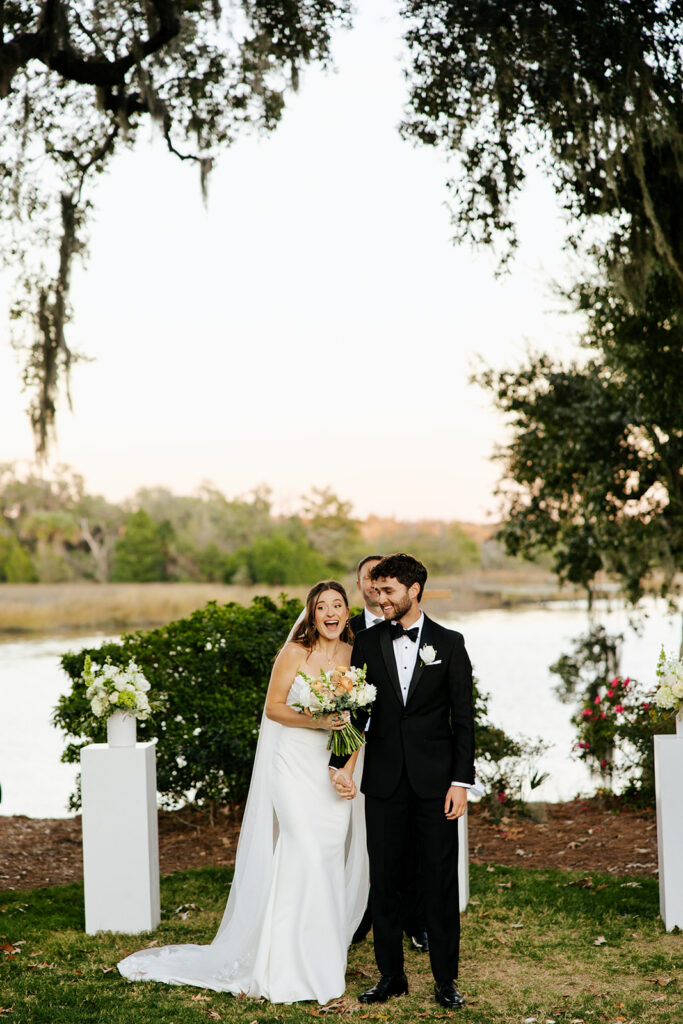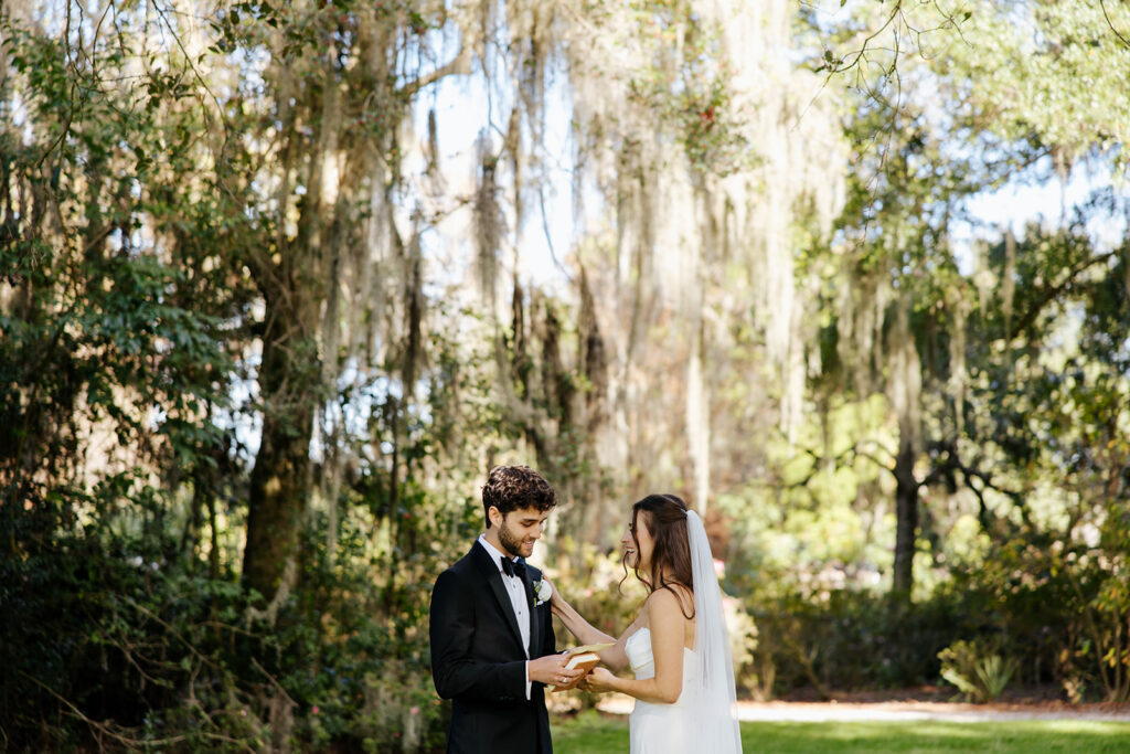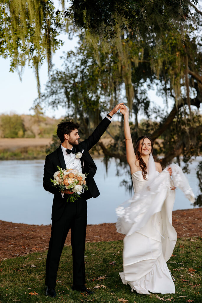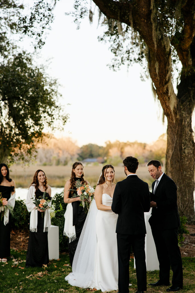 Sam and Gabija met in undergrad at Vanderbilt and got engaged in the beautiful country of Lithuania. So of course they had to also get married in Charleston, at the stunning Magnolia Plantation and Gardens! This venue had the most gorgeous areas to photograph at — from the bridge over a pond (pictured above), to a beautiful tree-lined avenue, and even a riverside ceremony spot. It might have been a bit chilly, but the warmth of celebrating these two tying the knot kept us all cozy.