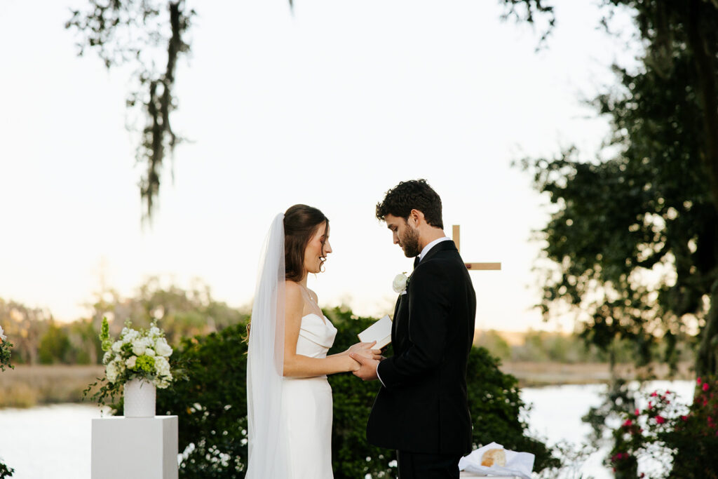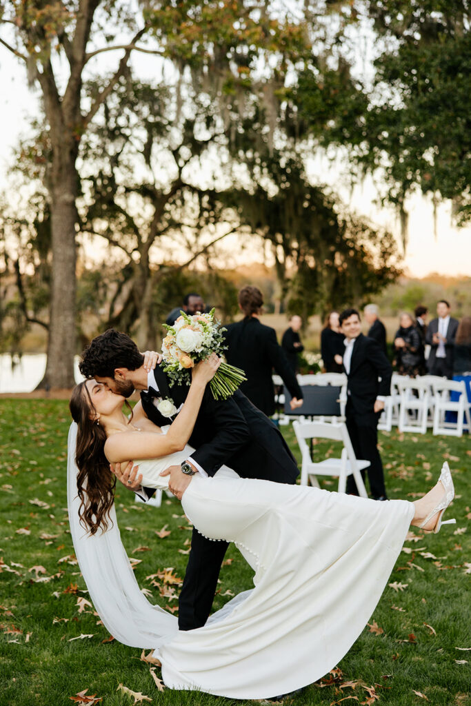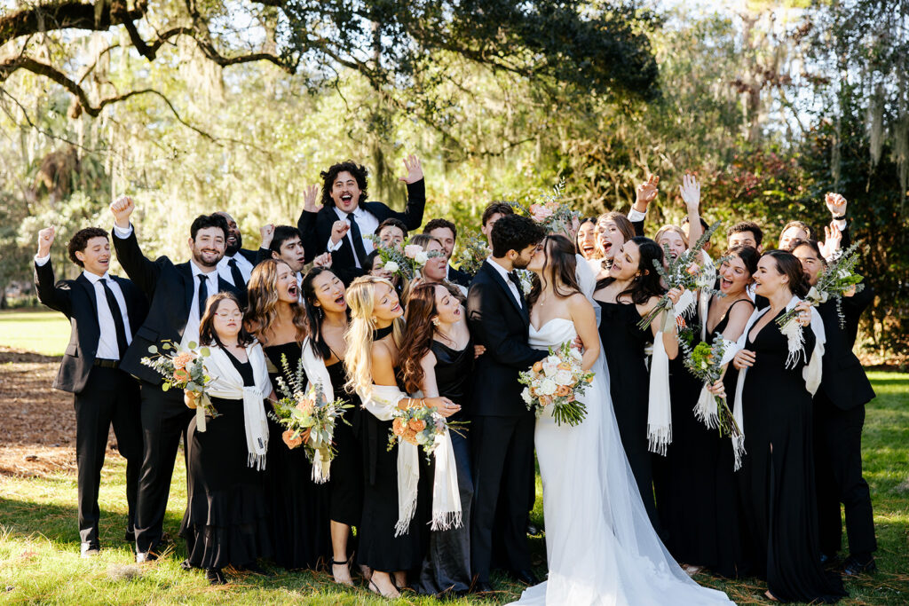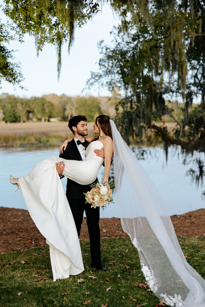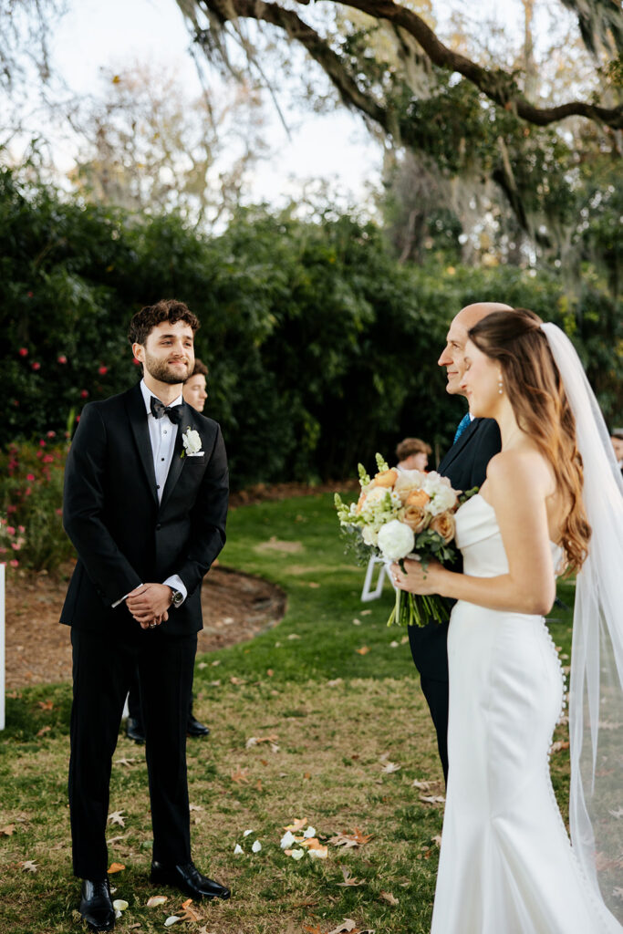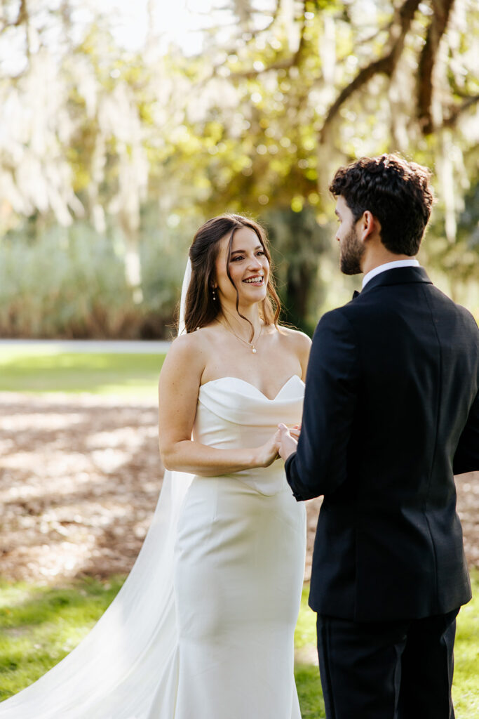 Sam and Gabija met in undergrad at Vanderbilt and got engaged in the beautiful country of Lithuania. So of course they had to also get married in Charleston, at the stunning Magnolia Plantation and Gardens! This venue had the most gorgeous areas to photograph at — from the bridge over a pond (pictured above), to a beautiful tree-lined avenue, and even a riverside ceremony spot. It might have been a bit chilly, but the warmth of celebrating these two tying the knot kept us all cozy.