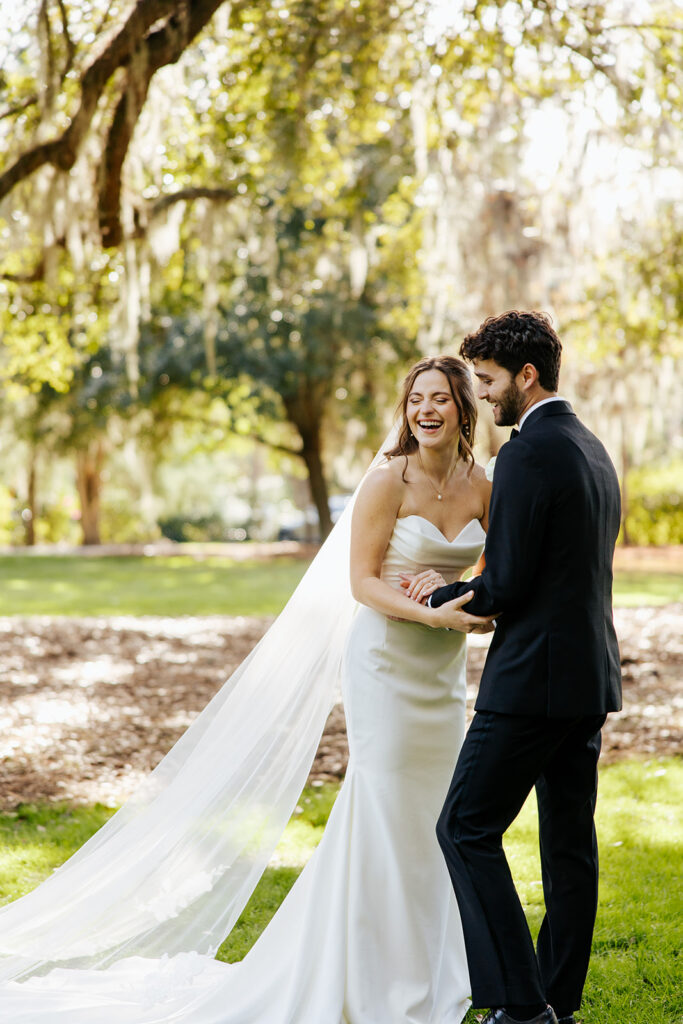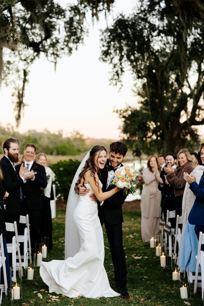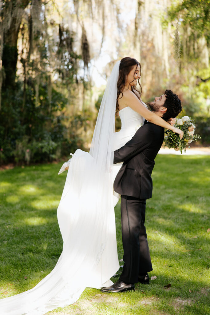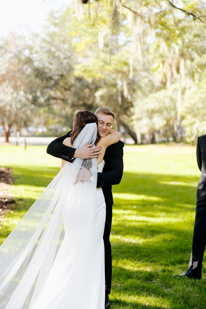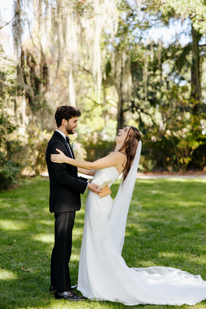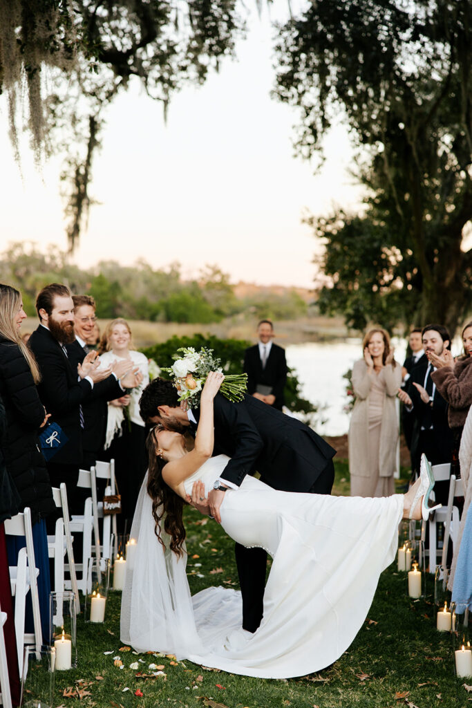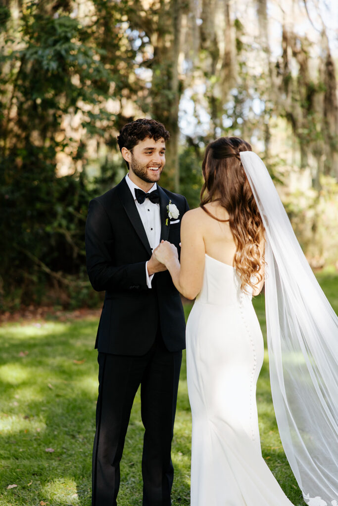 Sam and Gabija met in undergrad at Vanderbilt and got engaged in the beautiful country of Lithuania. So of course they had to also get married in Charleston, at the stunning Magnolia Plantation and Gardens! This venue had the most gorgeous areas to photograph at — from the bridge over a pond (pictured above), to a beautiful tree-lined avenue, and even a riverside ceremony spot. It might have been a bit chilly, but the warmth of celebrating these two tying the knot kept us all cozy.