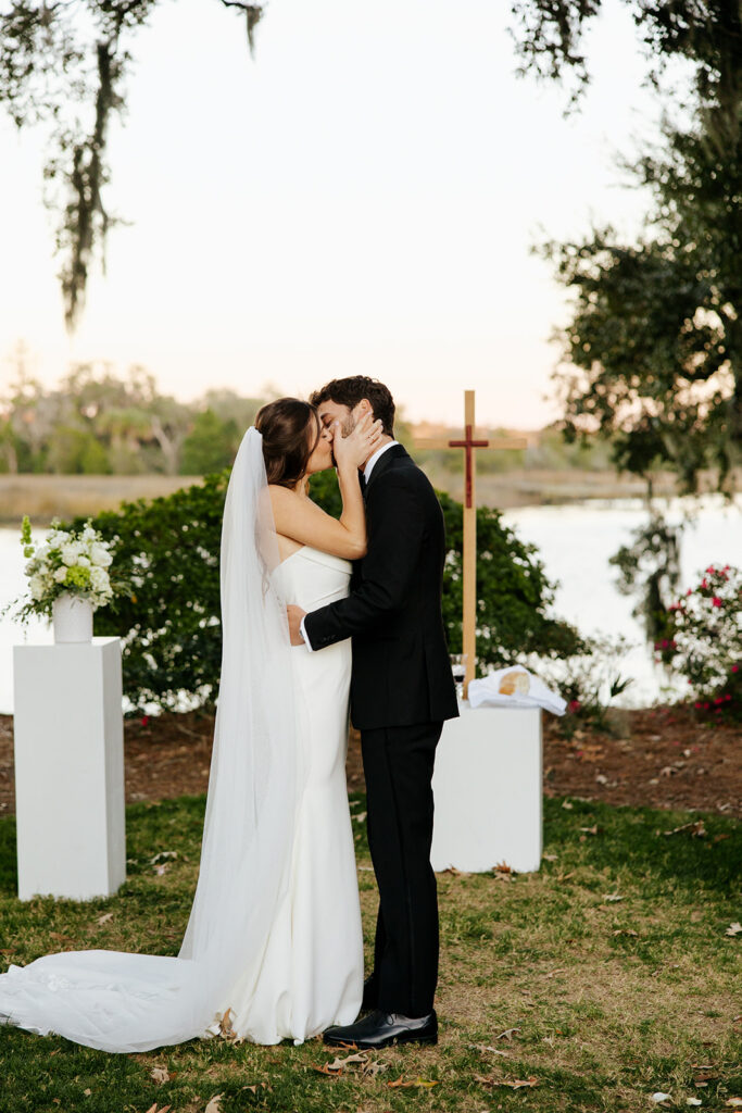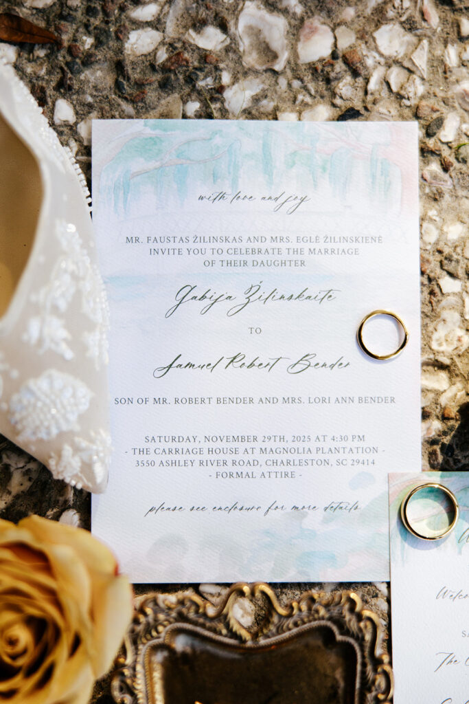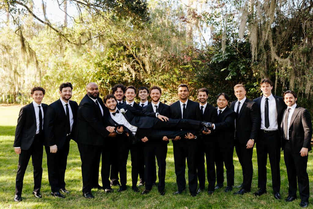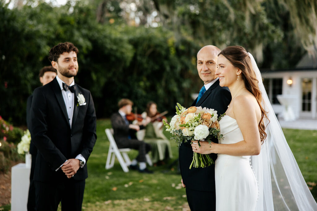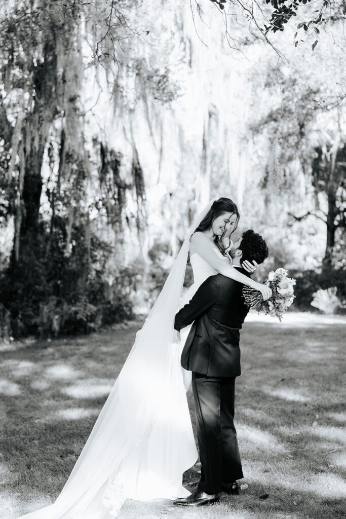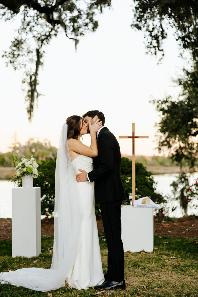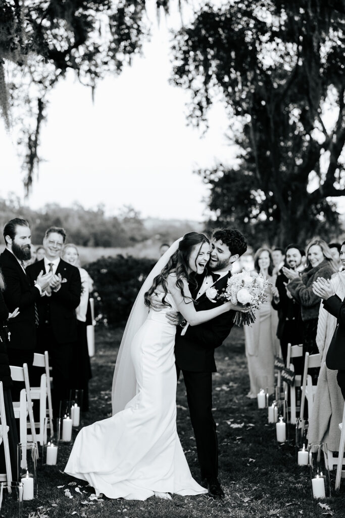 Sam and Gabija met in undergrad at Vanderbilt and got engaged in the beautiful country of Lithuania. So of course they had to also get married in Charleston, at the stunning Magnolia Plantation and Gardens! This venue had the most gorgeous areas to photograph at — from the bridge over a pond (pictured above), to a beautiful tree-lined avenue, and even a riverside ceremony spot. It might have been a bit chilly, but the warmth of celebrating these two tying the knot kept us all cozy.