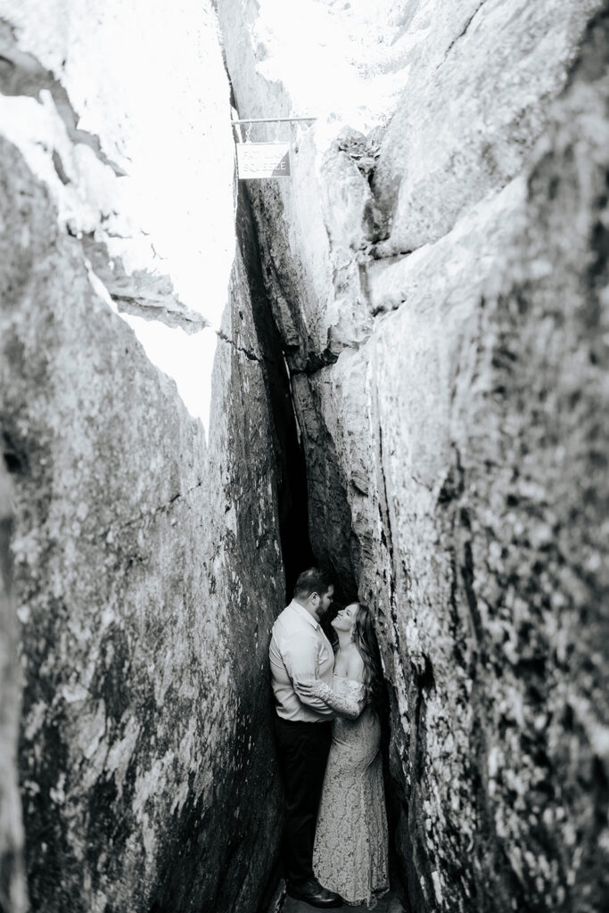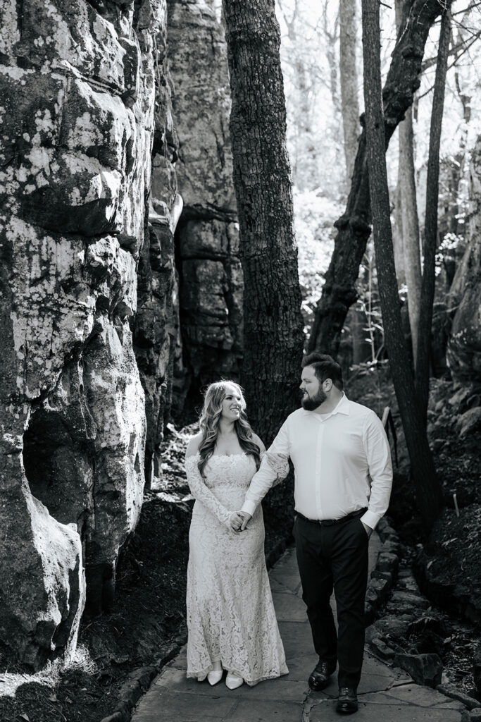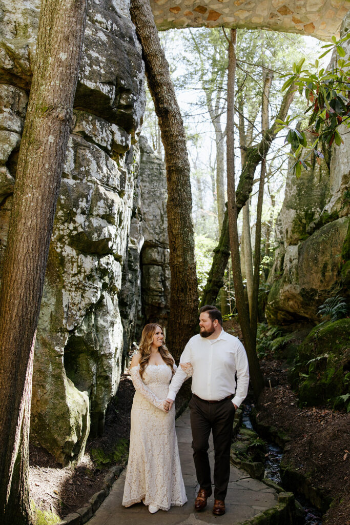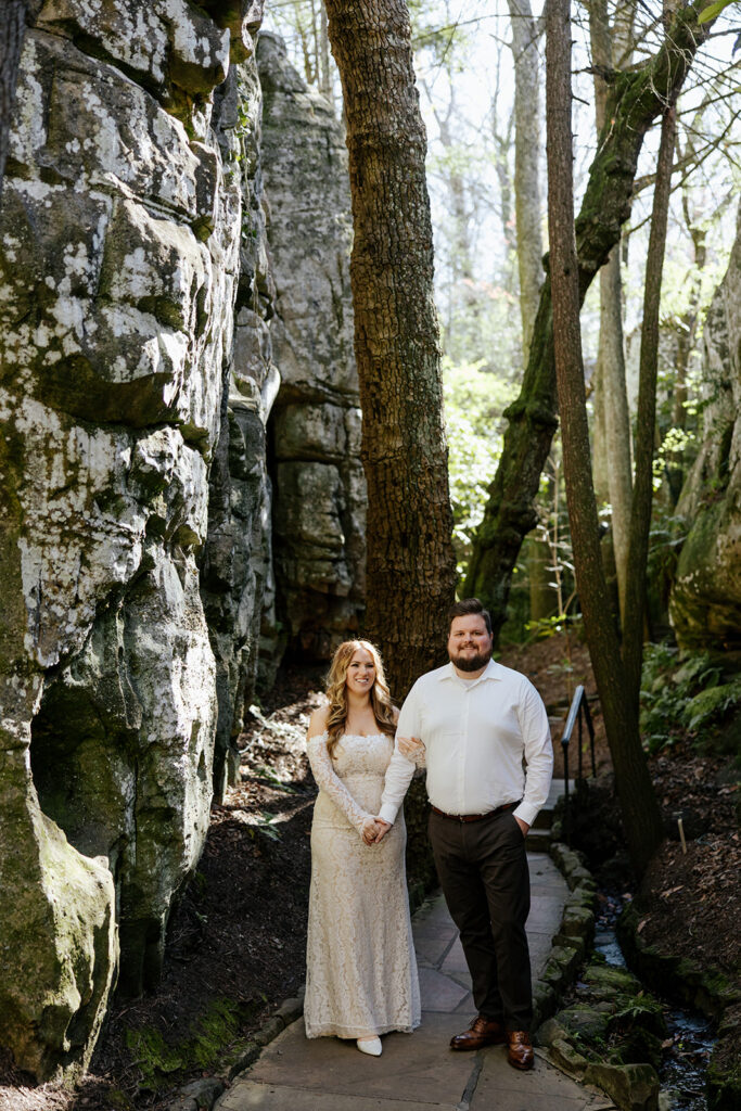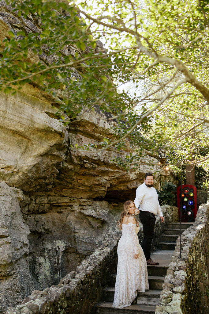 Mae and Adam wanted a romantic and woodsy vibe for their engagement session and they threw out the idea of having their session at Rock City in Chattanooga! The caves and waterfall and overlooks were exactly what they wanted, so we headed out for a morning session and MAN we had a blast! There were so many unique and creative pieces of architecture and stunning viewpoints, and we also got to simply enjoy the stroll through the rocks too. This was such a blast, and I’m so excited to watch these two get married this year too, and glad we could celebrate with these photos!!