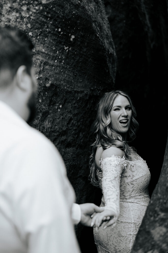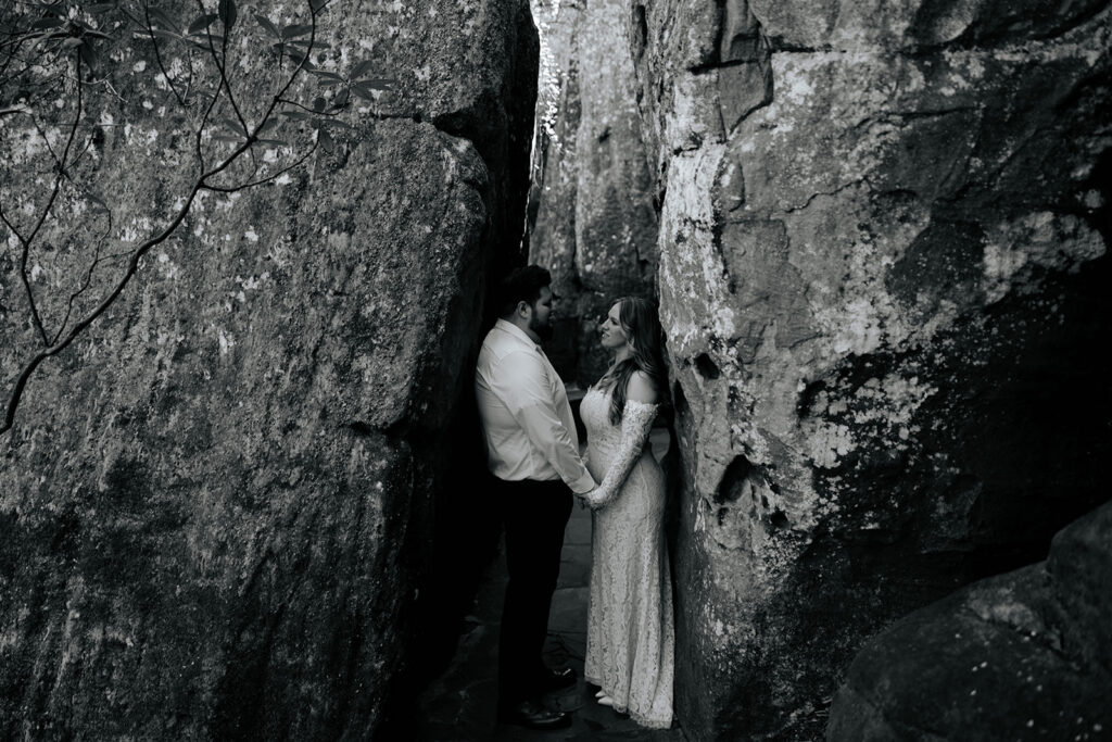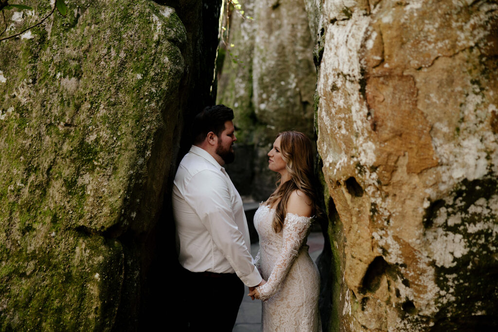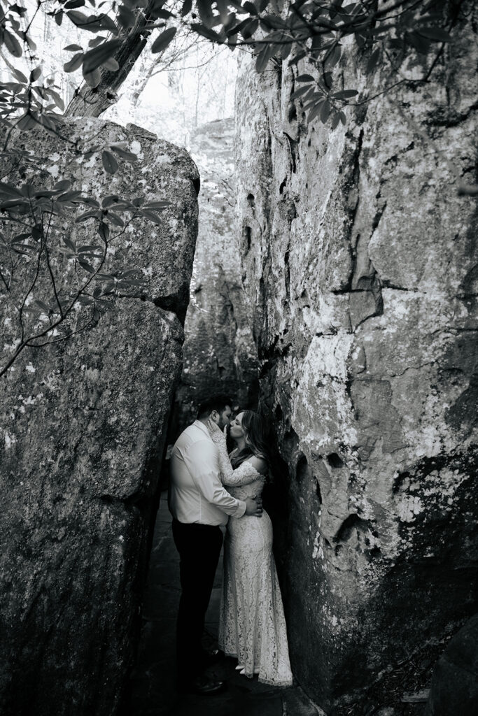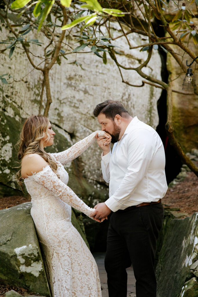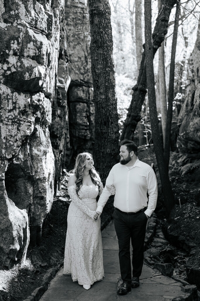 Mae and Adam wanted a romantic and woodsy vibe for their engagement session and they threw out the idea of having their session at Rock City in Chattanooga! The caves and waterfall and overlooks were exactly what they wanted, so we headed out for a morning session and MAN we had a blast! There were so many unique and creative pieces of architecture and stunning viewpoints, and we also got to simply enjoy the stroll through the rocks too. This was such a blast, and I’m so excited to watch these two get married this year too, and glad we could celebrate with these photos!!