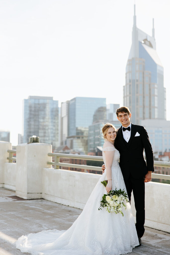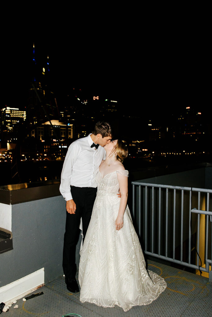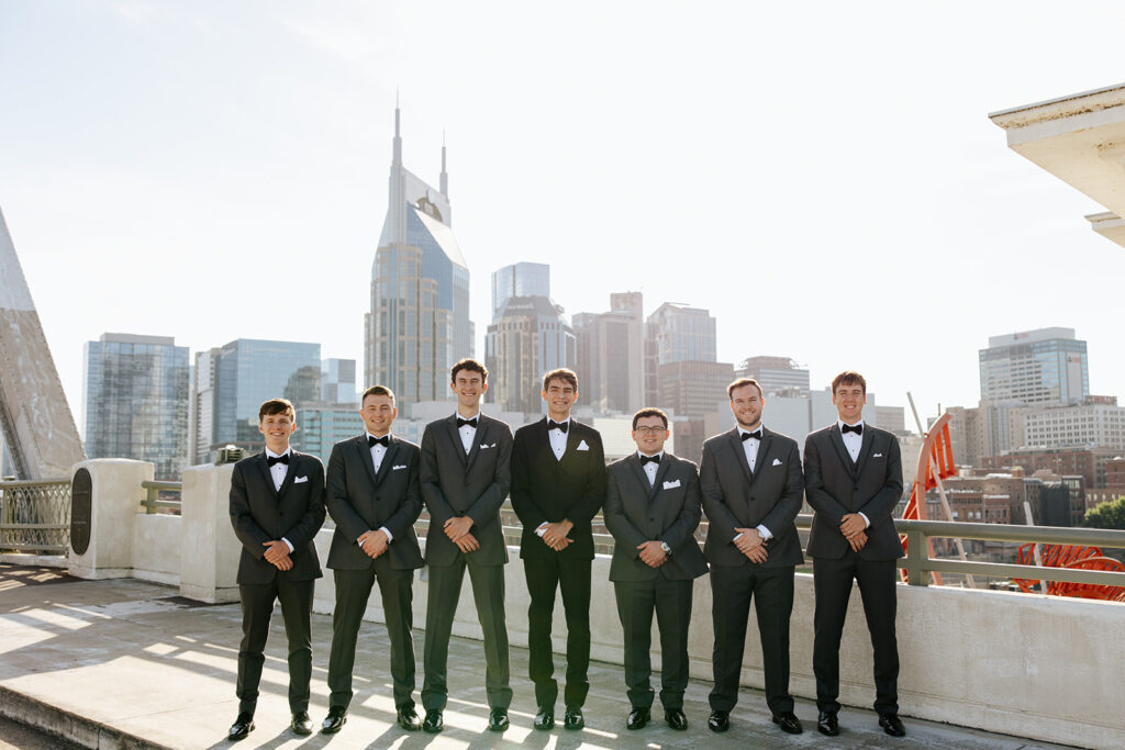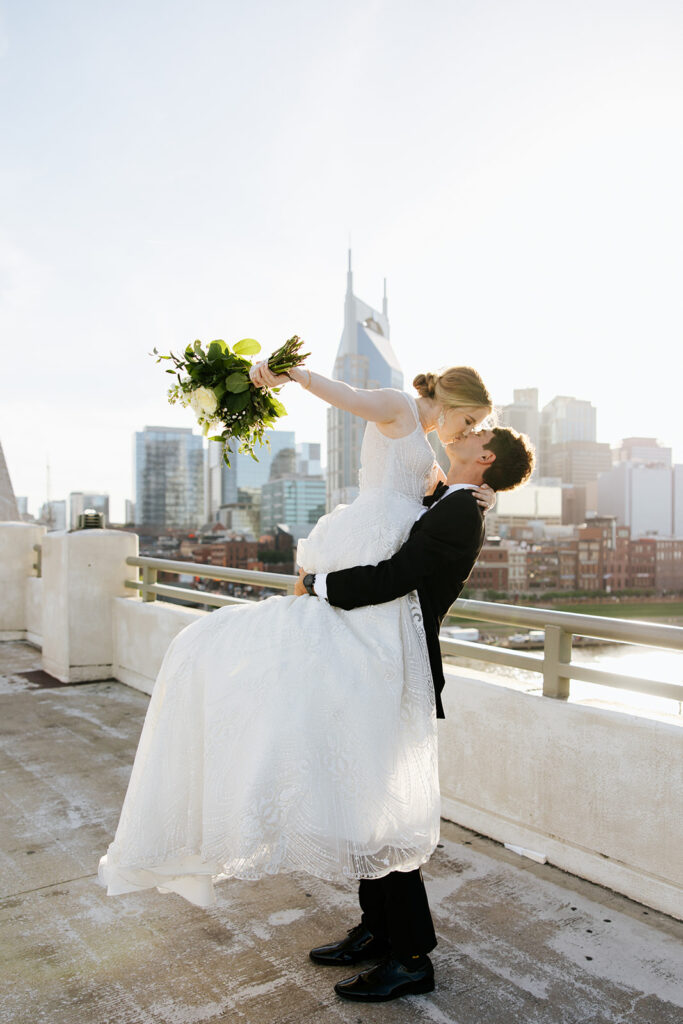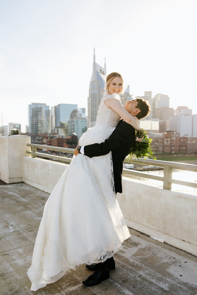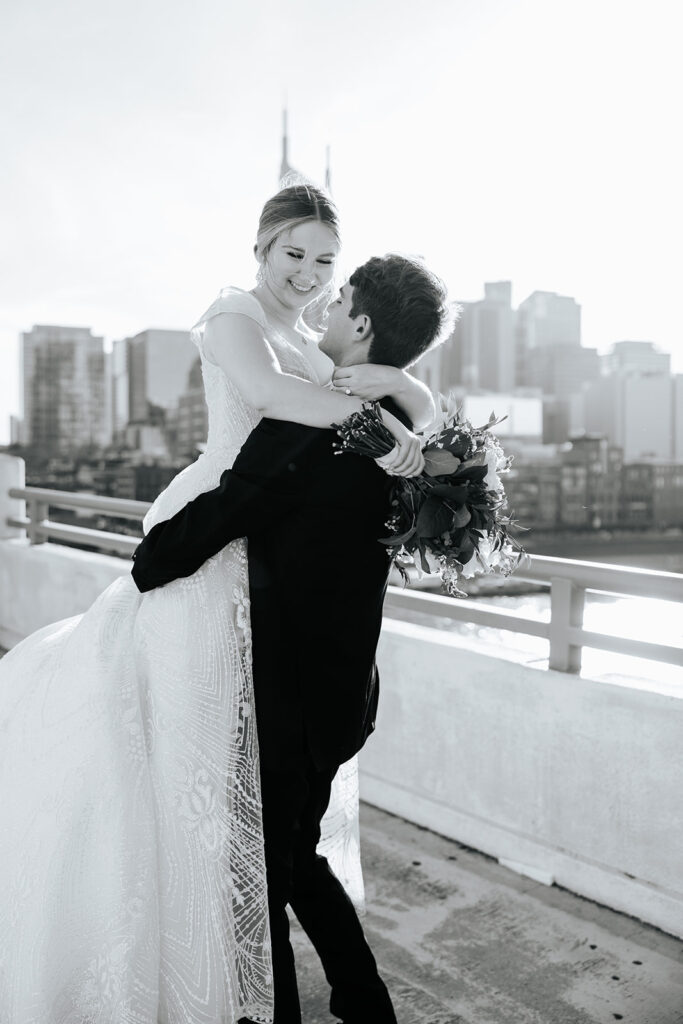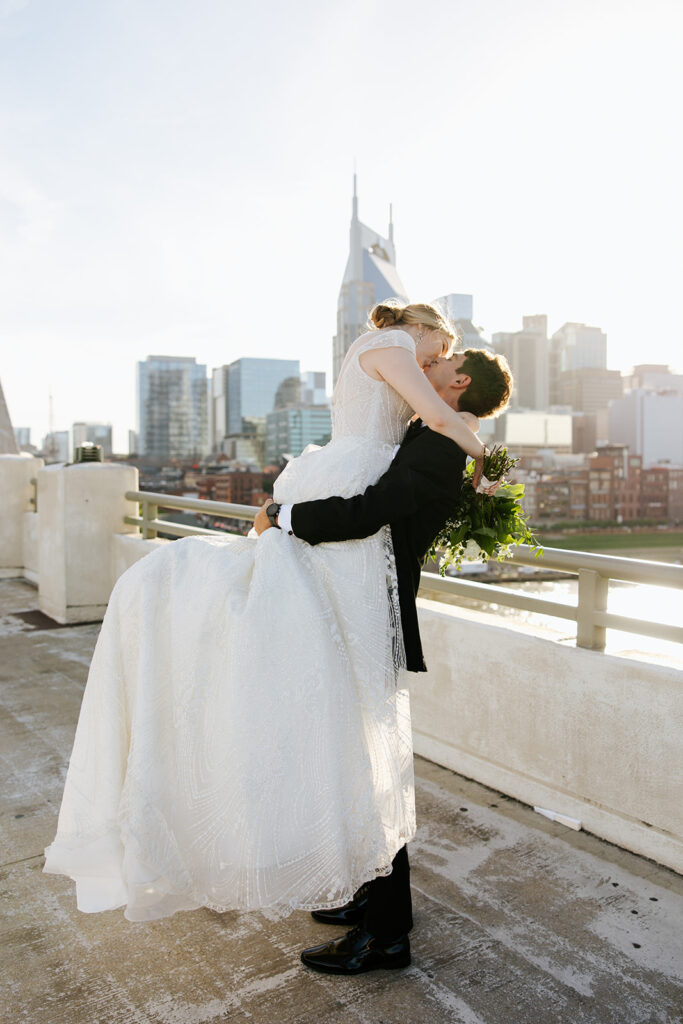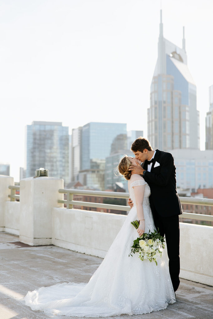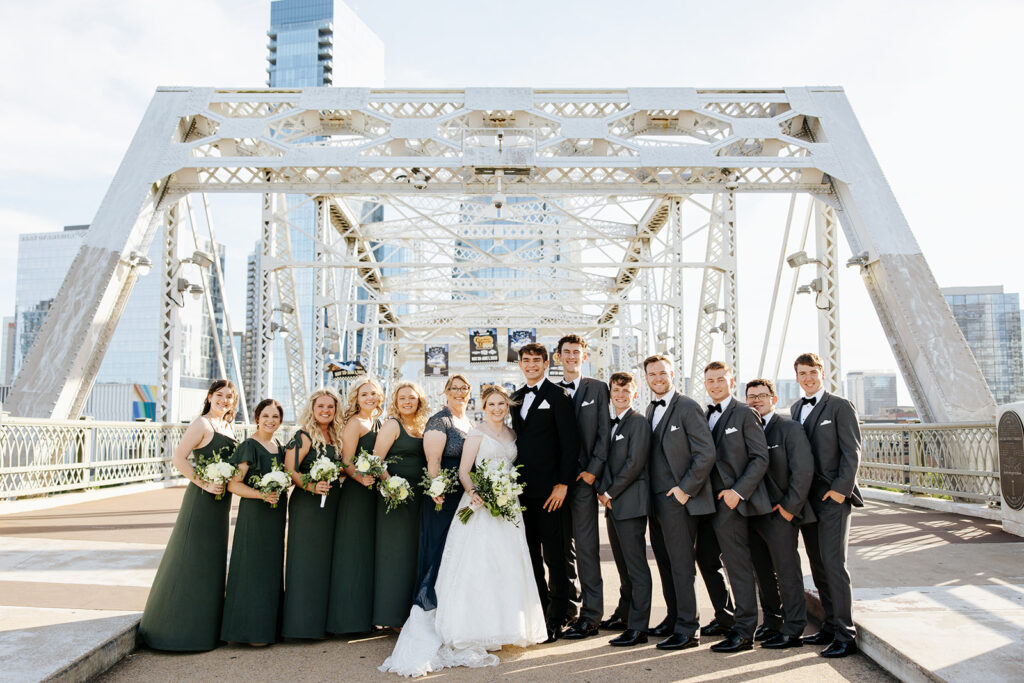 Daniel and Abby are truly WONDERFUL. These two are so down to earth and simply ADORE their people, and it was so evident on their wedding day to see that they also loved each other so deeply. So so many happy tears were shed, LOTS of incredible food was eaten, and they got to have a stunning church ceremony followed by a beautiful reception at The Bridge Building with the Nashville skyline behind them (a perfect venue when you’re trying to showcase Nashville to all of your friends coming into town!!).