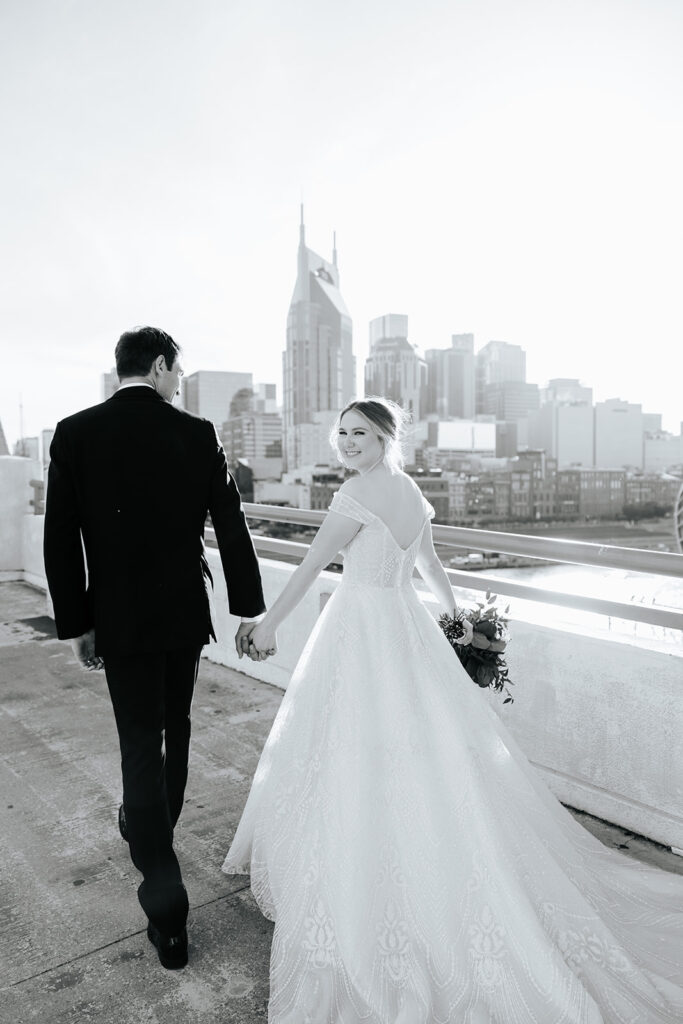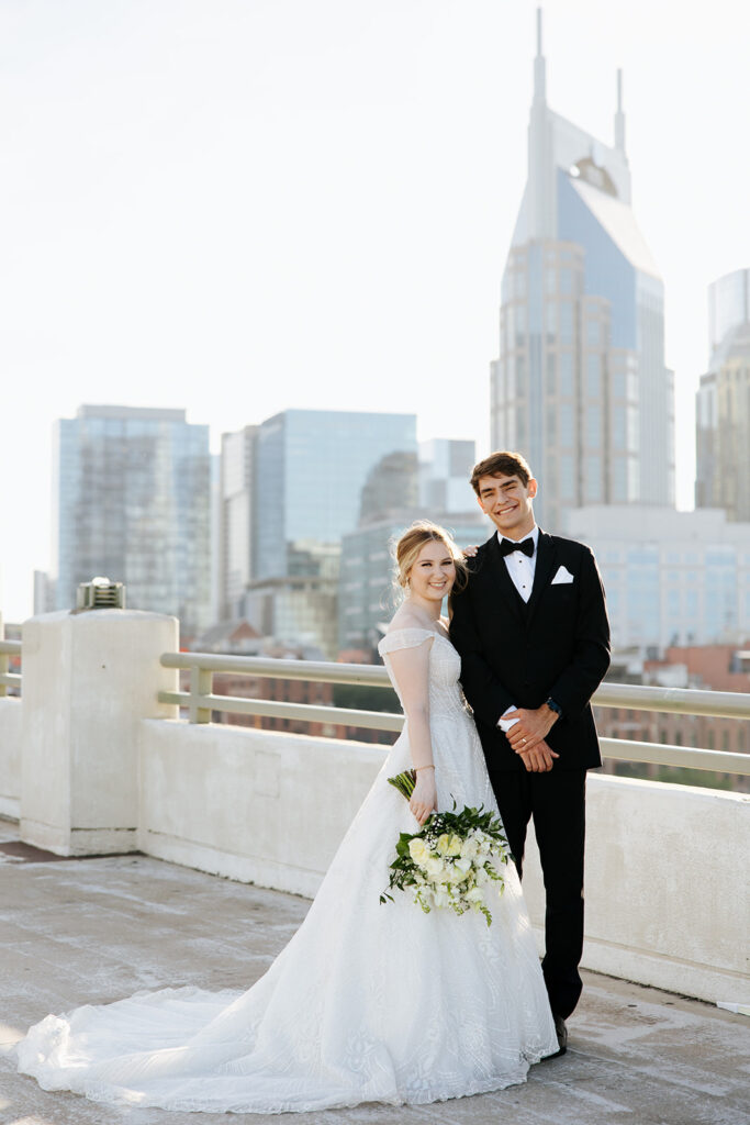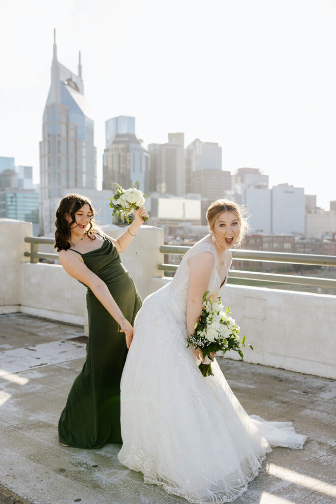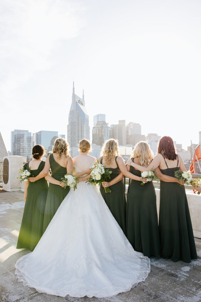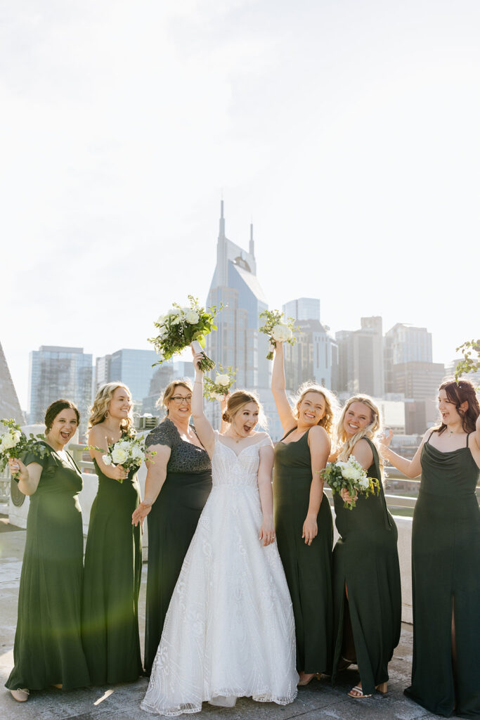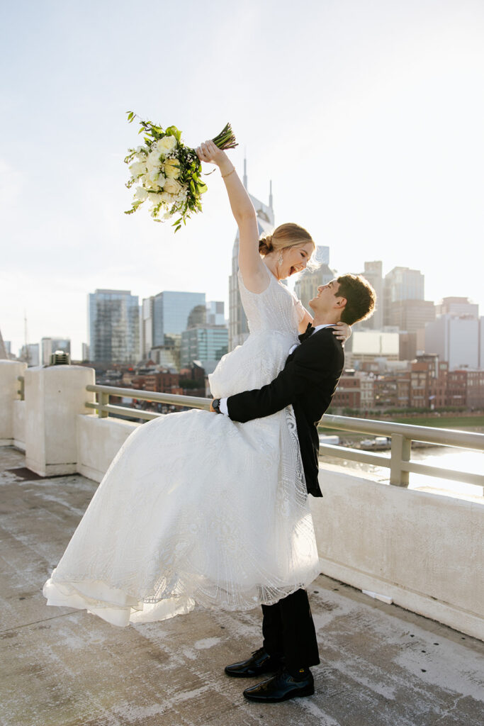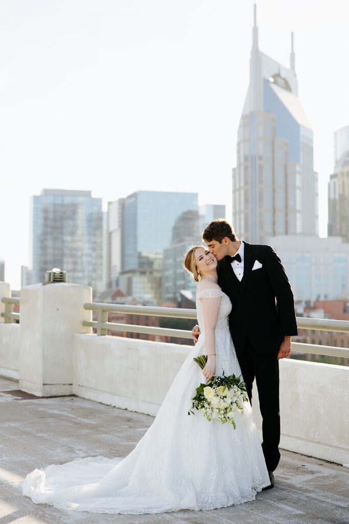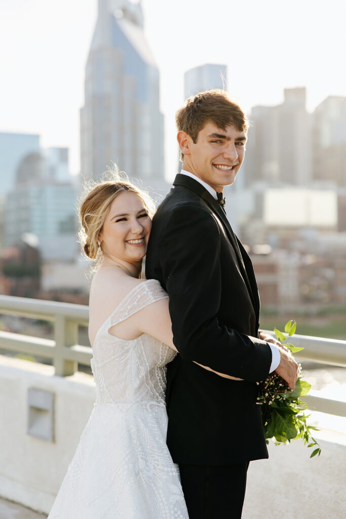 Daniel and Abby are truly WONDERFUL. These two are so down to earth and simply ADORE their people, and it was so evident on their wedding day to see that they also loved each other so deeply. So so many happy tears were shed, LOTS of incredible food was eaten, and they got to have a stunning church ceremony followed by a beautiful reception at The Bridge Building with the Nashville skyline behind them (a perfect venue when you’re trying to showcase Nashville to all of your friends coming into town!!).