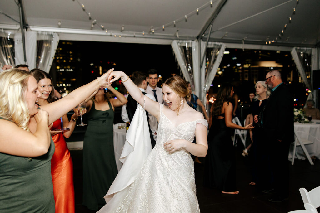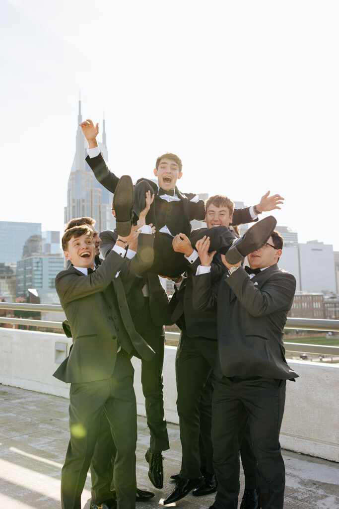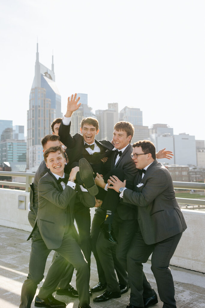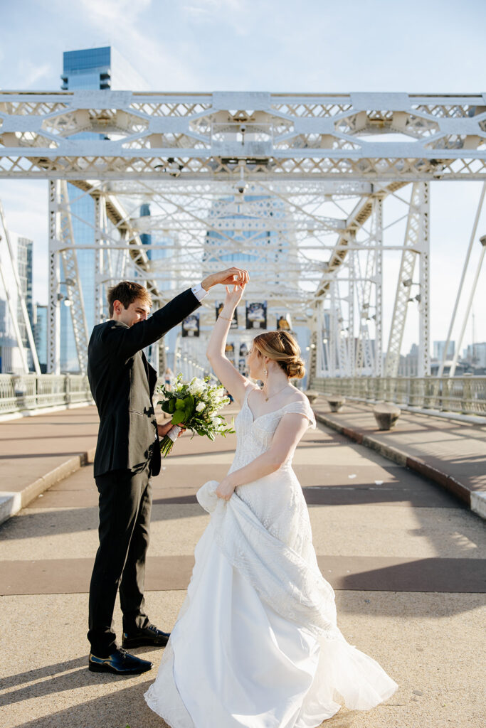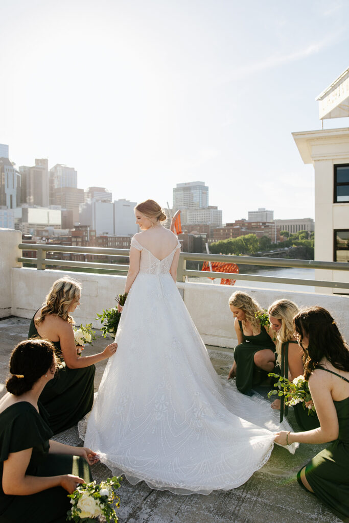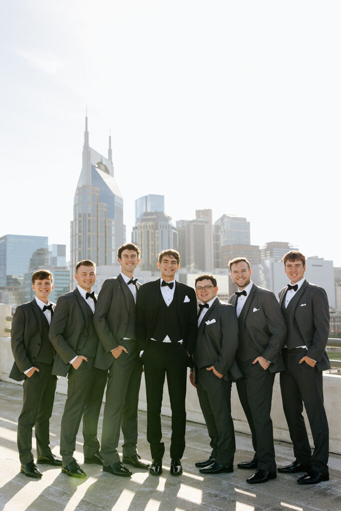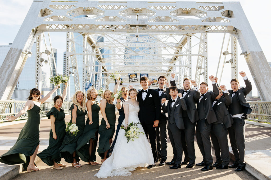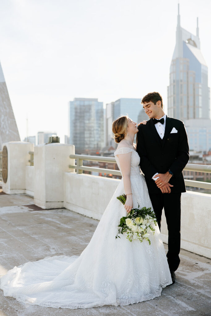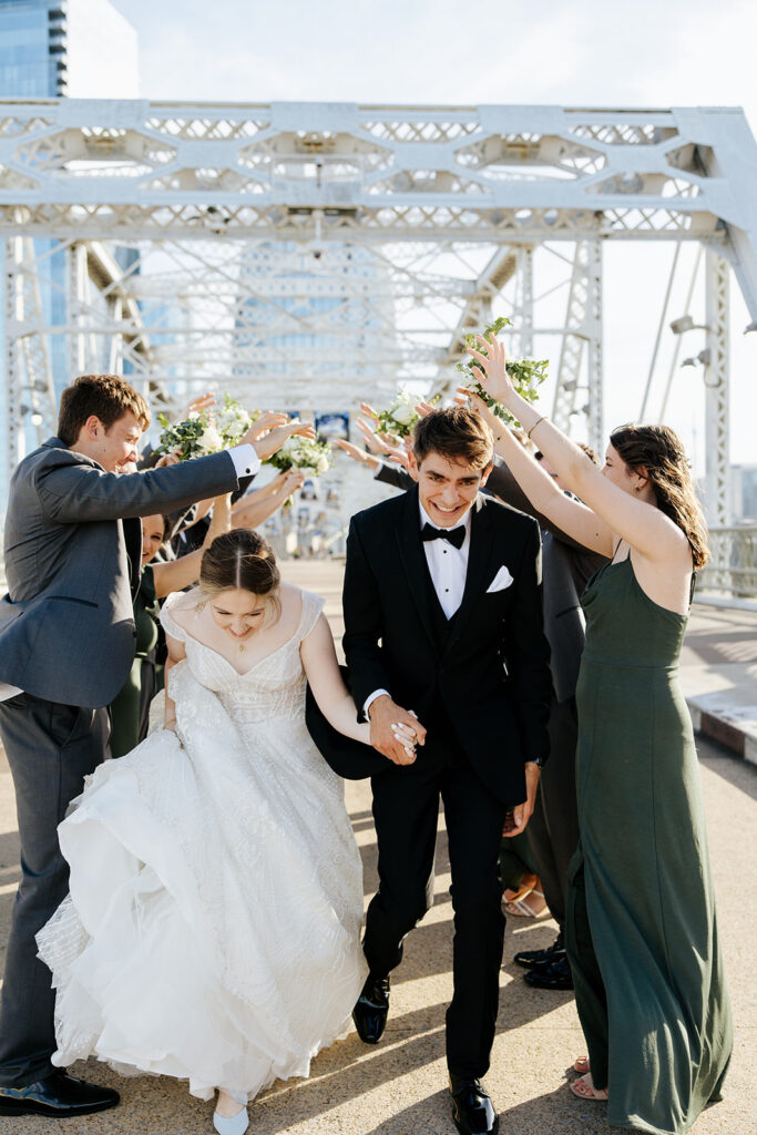 Daniel and Abby are truly WONDERFUL. These two are so down to earth and simply ADORE their people, and it was so evident on their wedding day to see that they also loved each other so deeply. So so many happy tears were shed, LOTS of incredible food was eaten, and they got to have a stunning church ceremony followed by a beautiful reception at The Bridge Building with the Nashville skyline behind them (a perfect venue when you’re trying to showcase Nashville to all of your friends coming into town!!).
