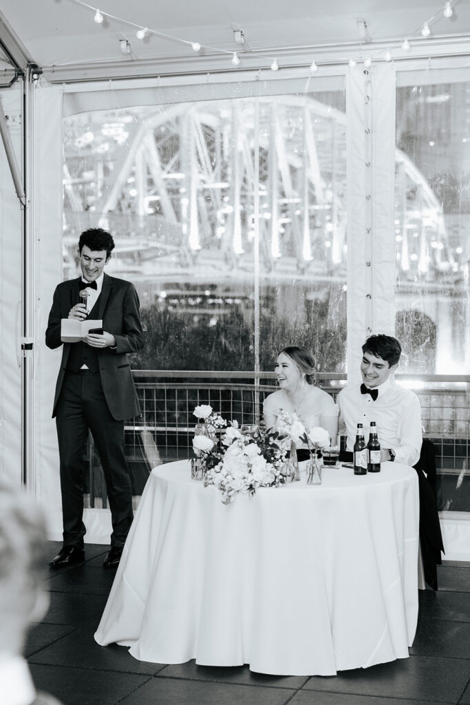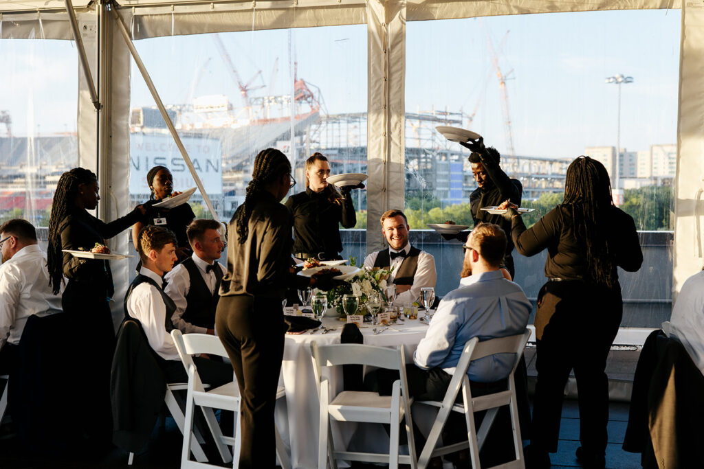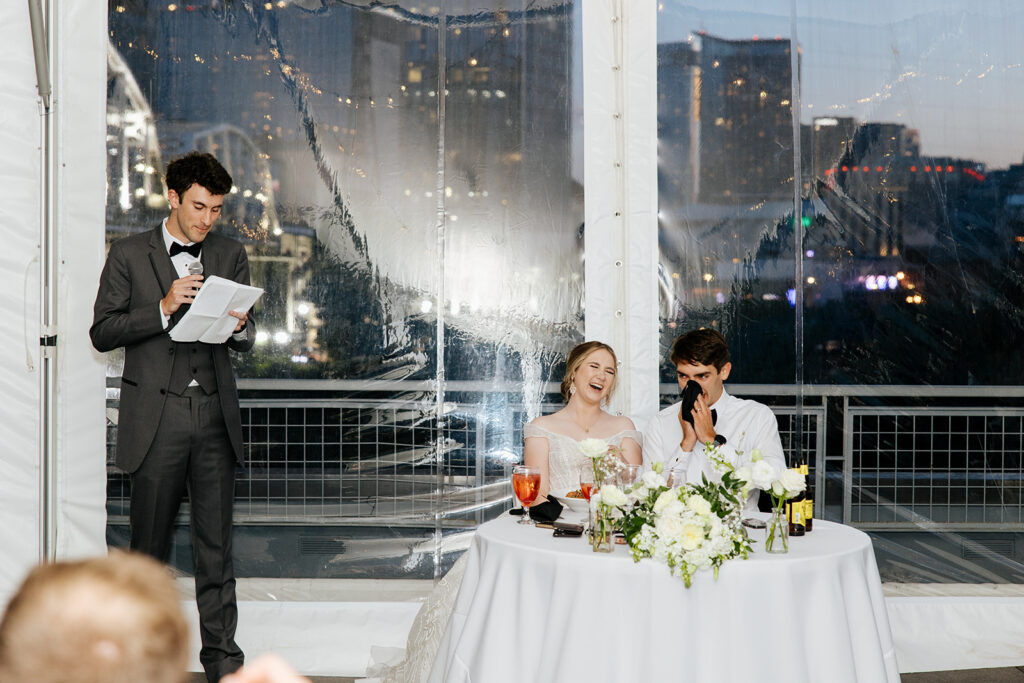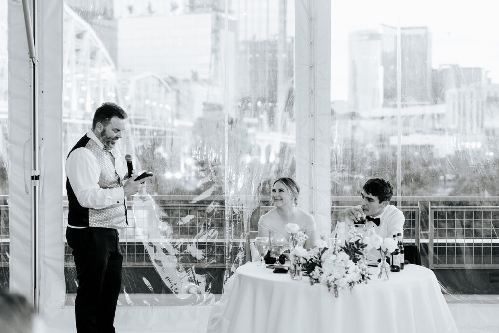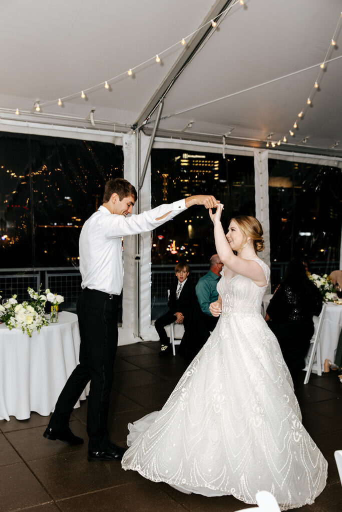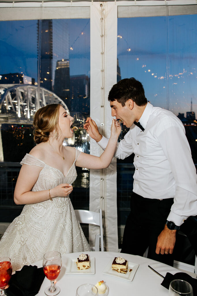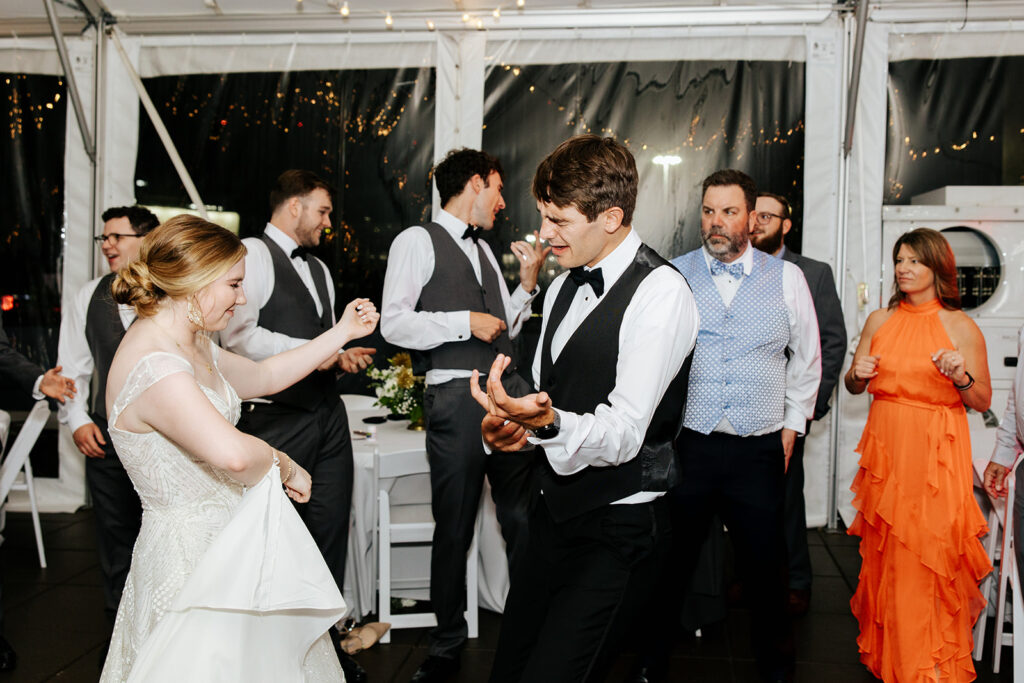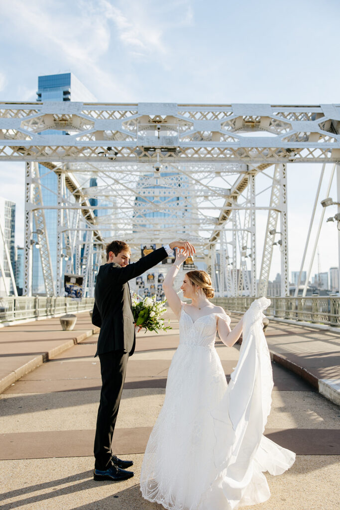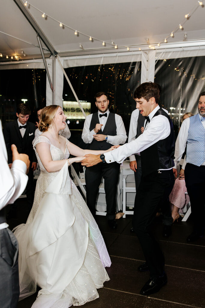 Daniel and Abby are truly WONDERFUL. These two are so down to earth and simply ADORE their people, and it was so evident on their wedding day to see that they also loved each other so deeply. So so many happy tears were shed, LOTS of incredible food was eaten, and they got to have a stunning church ceremony followed by a beautiful reception at The Bridge Building with the Nashville skyline behind them (a perfect venue when you’re trying to showcase Nashville to all of your friends coming into town!!).