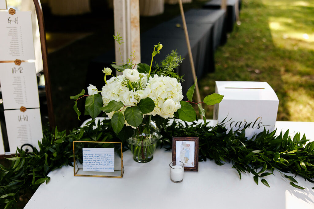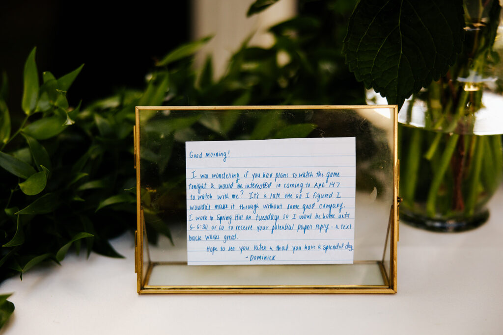 They had a photo of Dom’s first note to Rachel on a table so guests could remember how it all started.