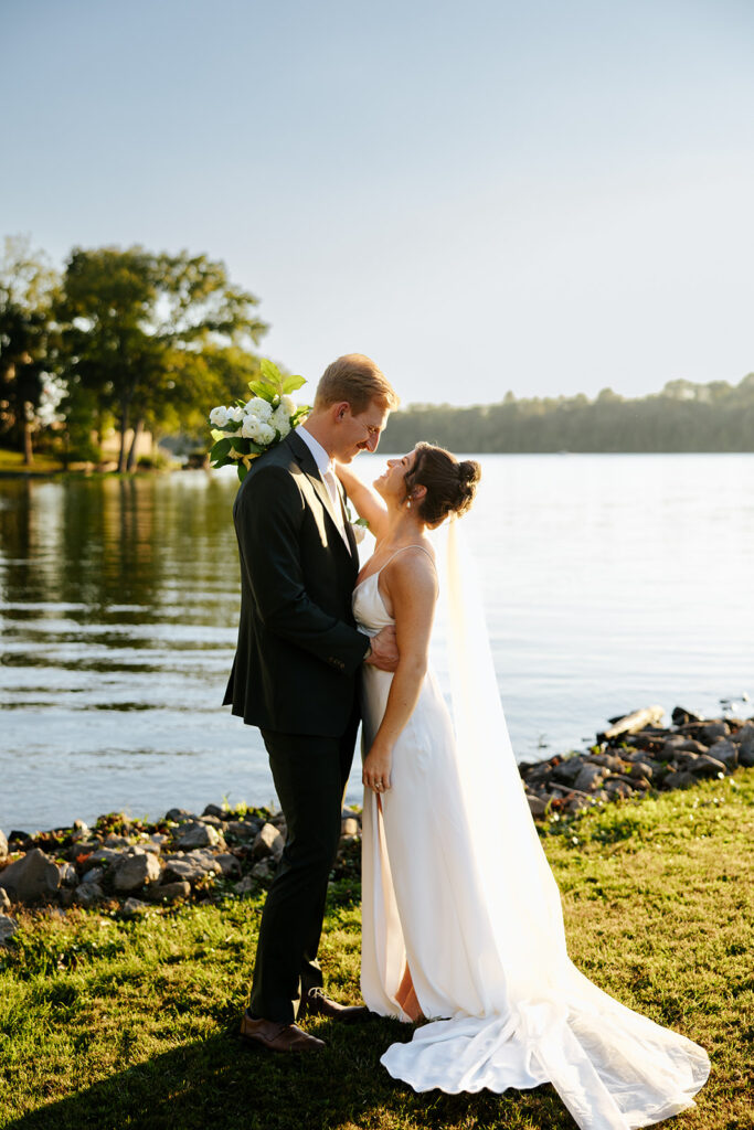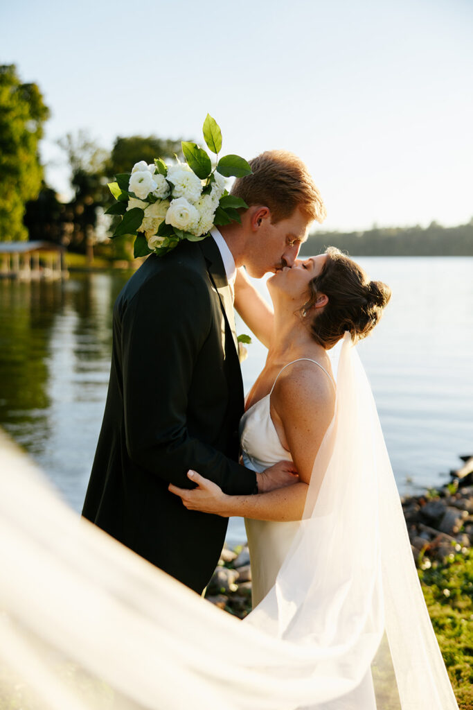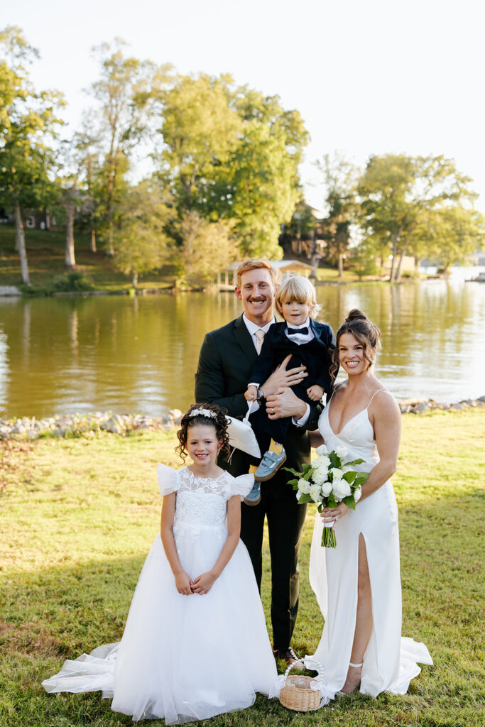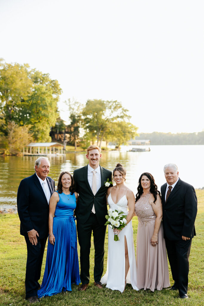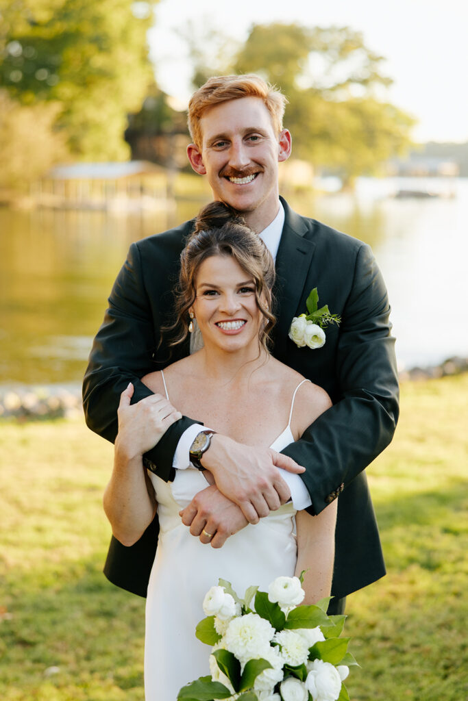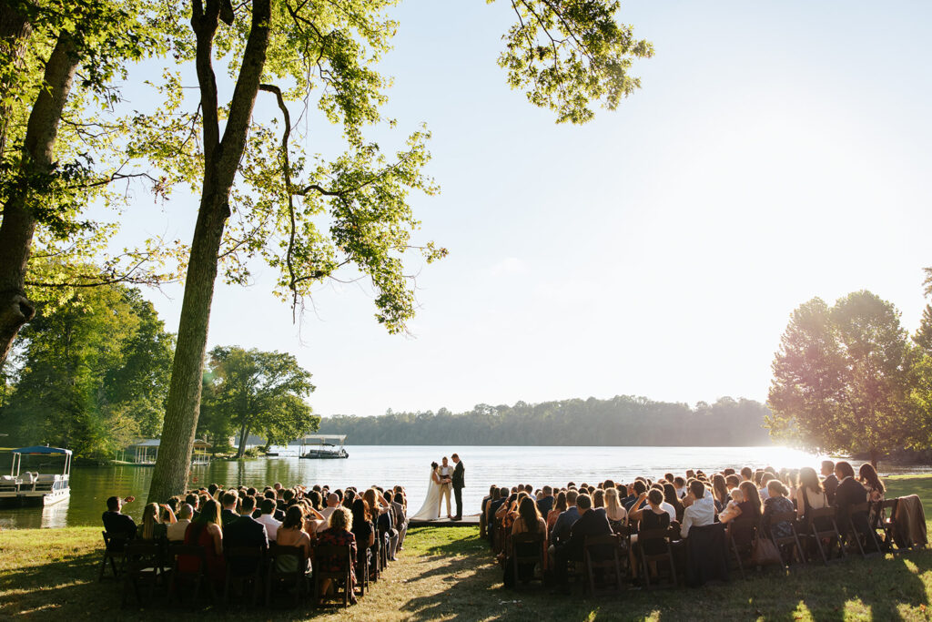 They got married in their family backyard with the most beautiful lake view around.