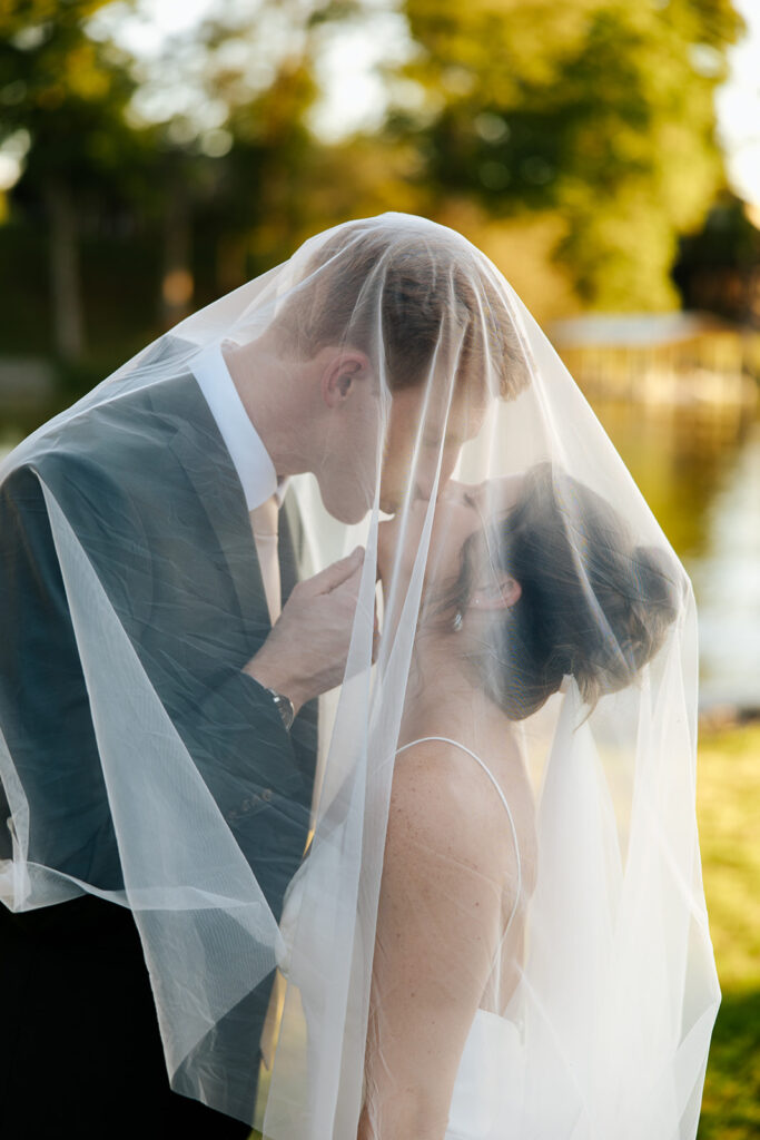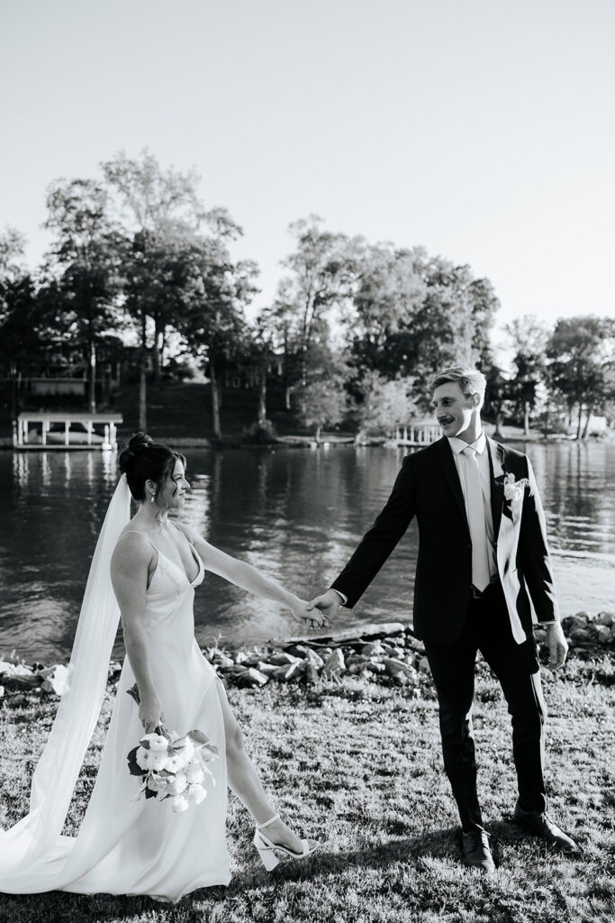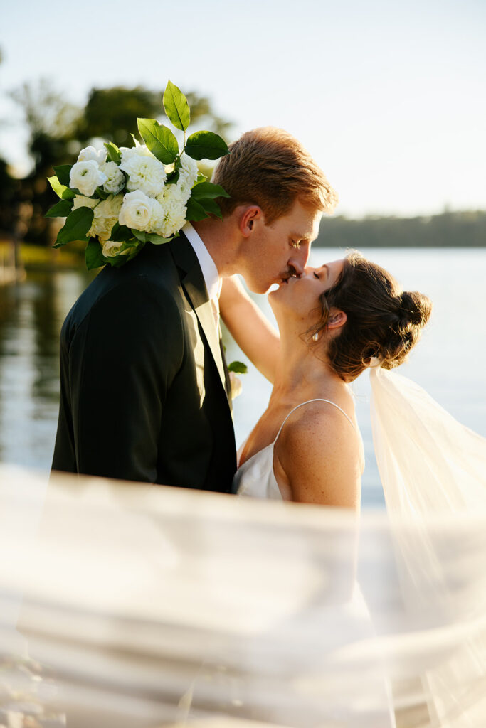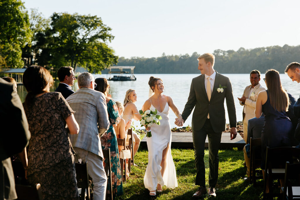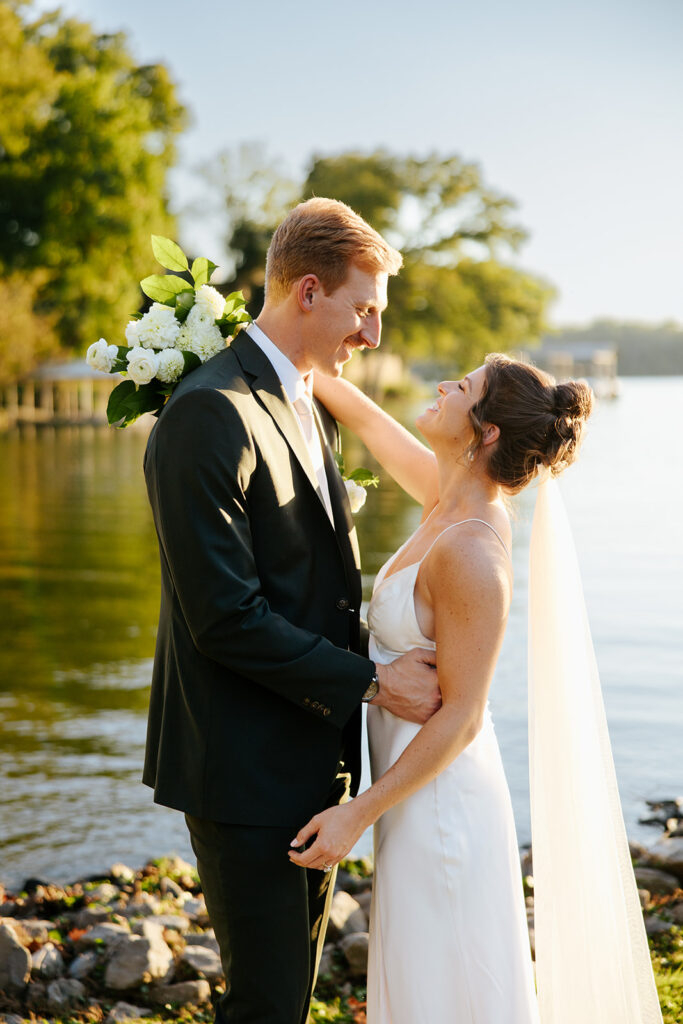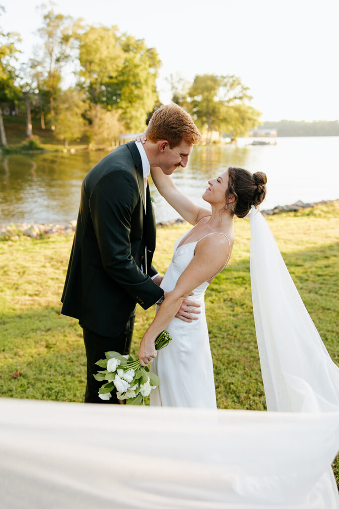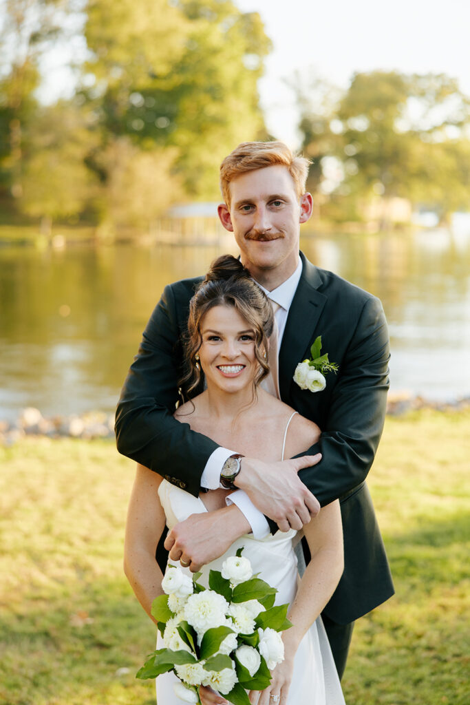 They got married in their family backyard with the most beautiful lake view around.