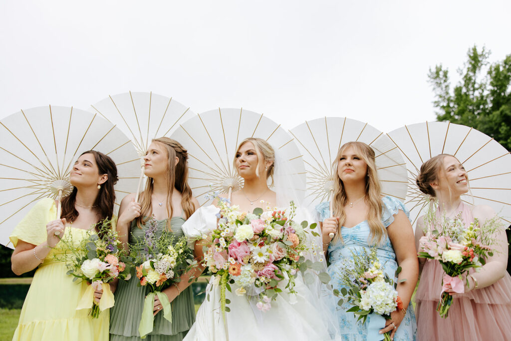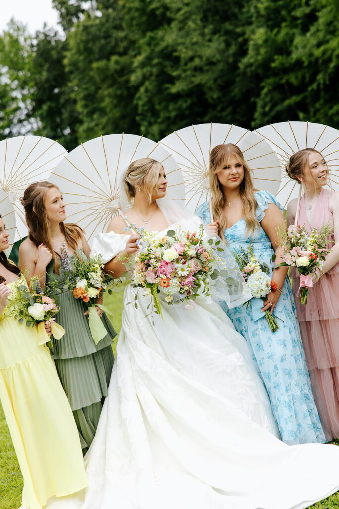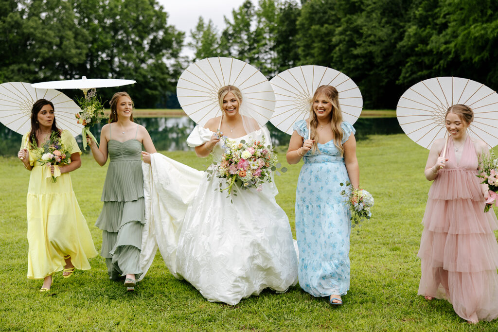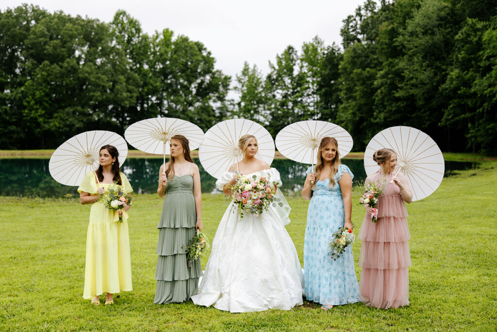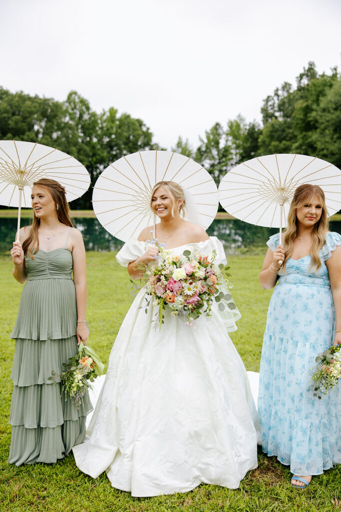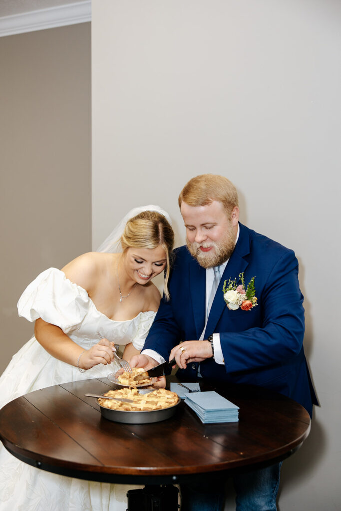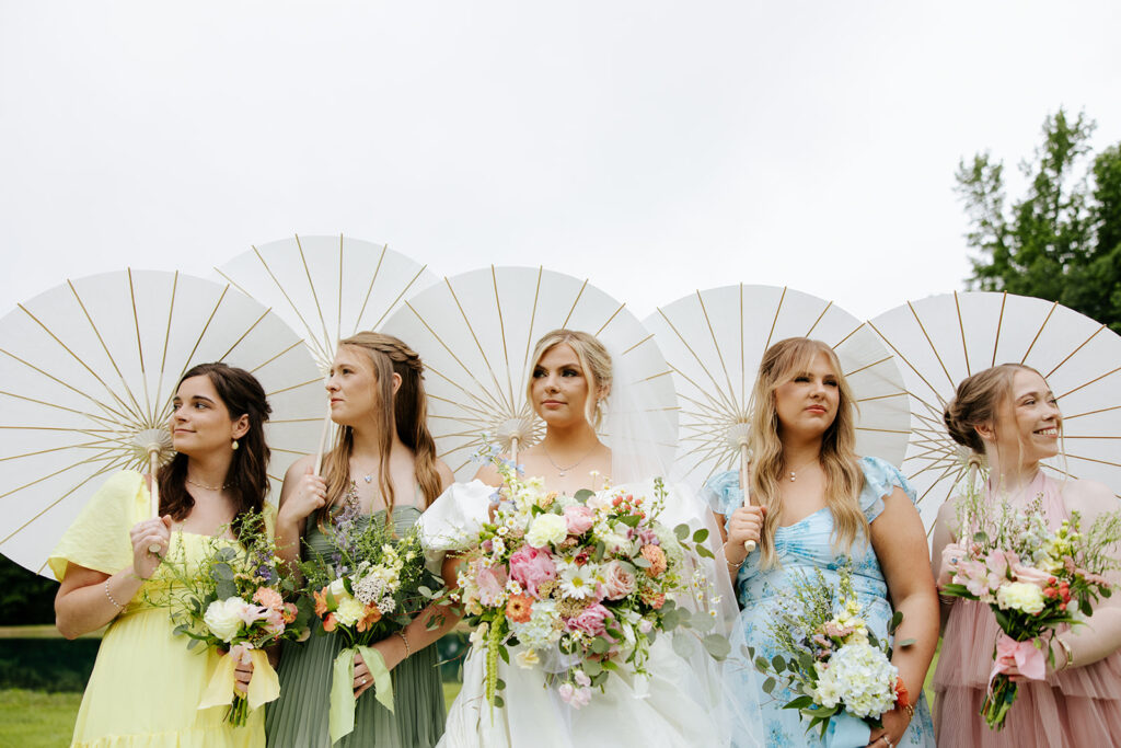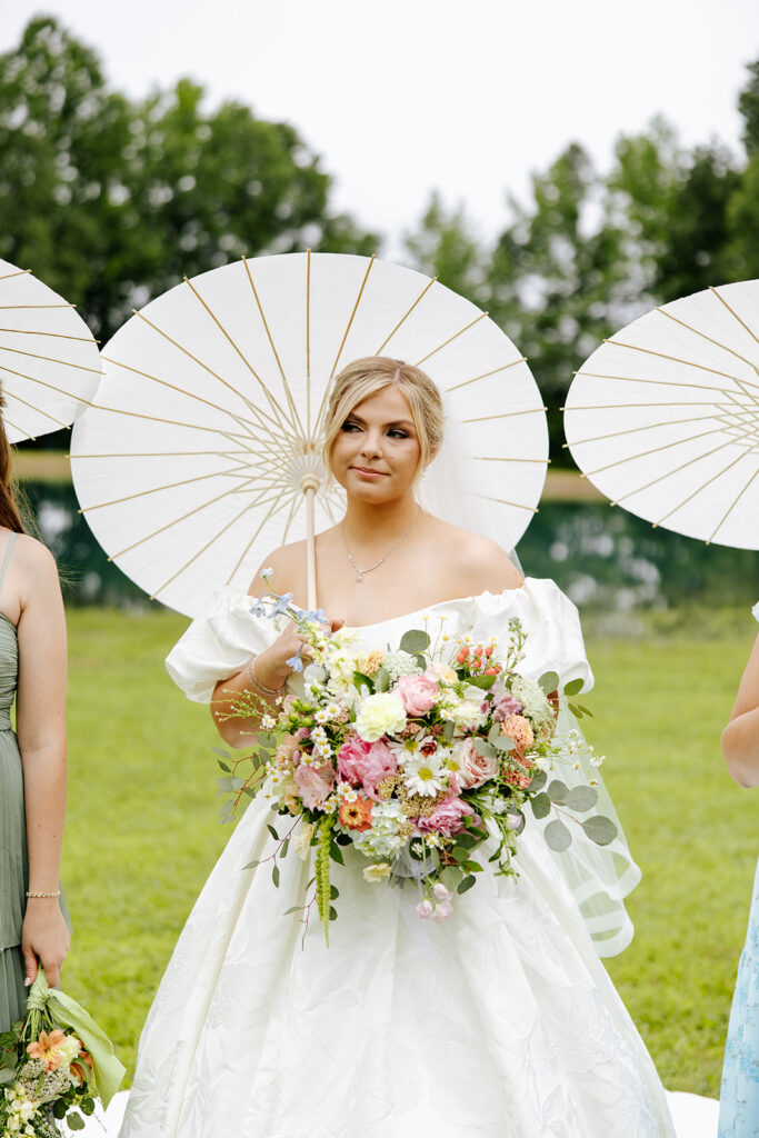 Getting married in their family backyard, having a pie-off during their reception (literally every pie was DELICIOUS), and even having cute parasols for the wedding party — a dreamy dreamy day!! Anddd to top it all off, they got to end it all with delicious food under a beautifully decorated pavilion with all their friends and family in tow.