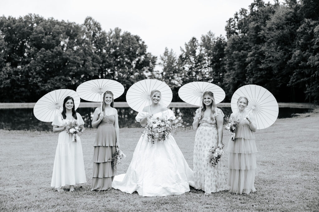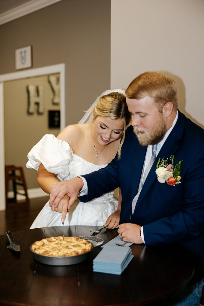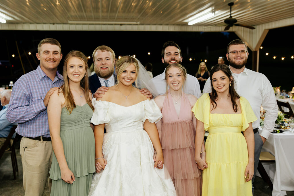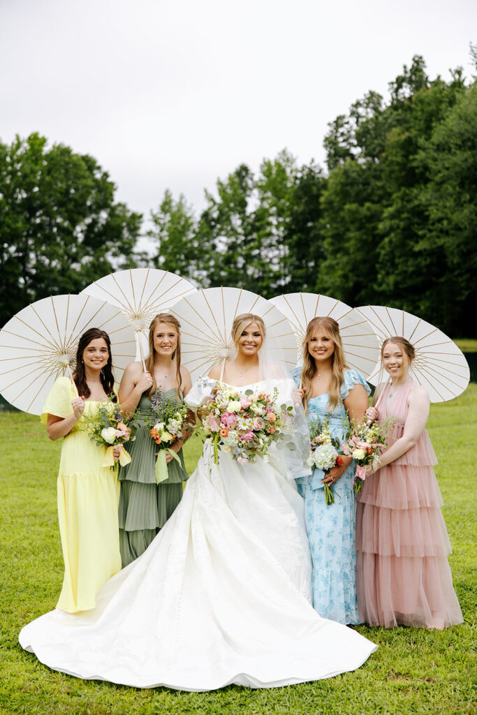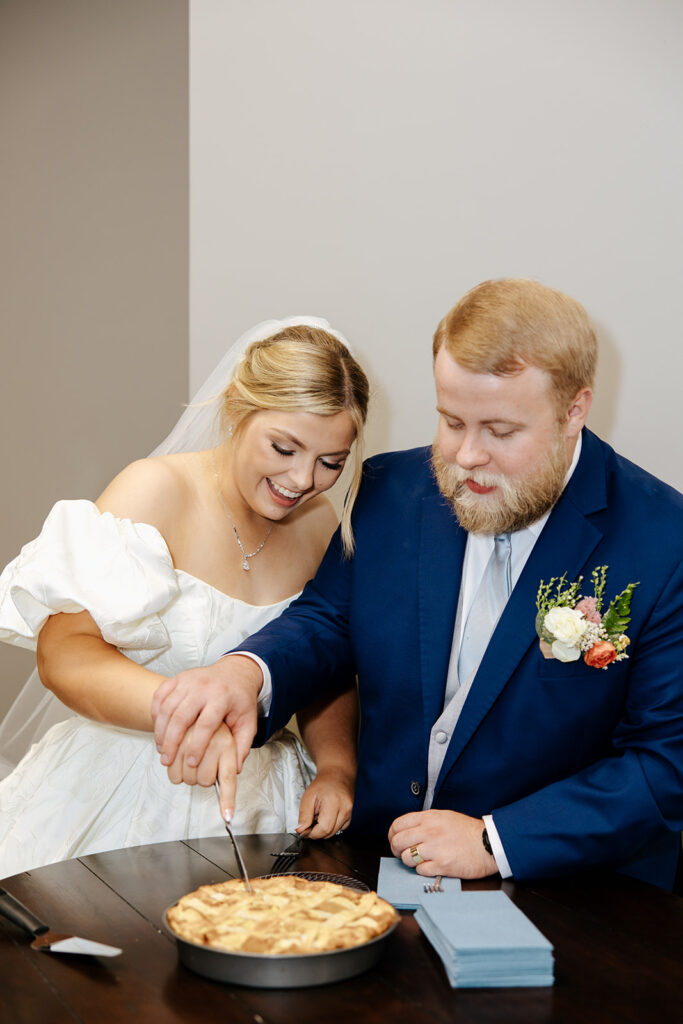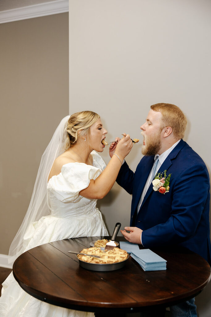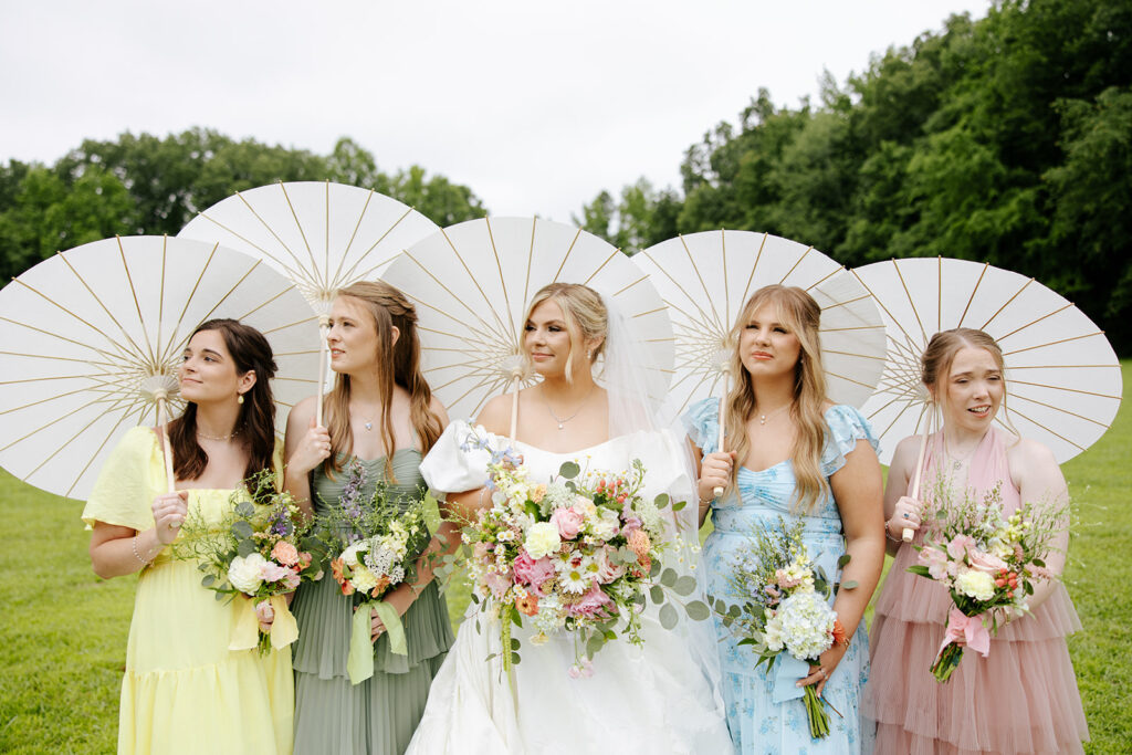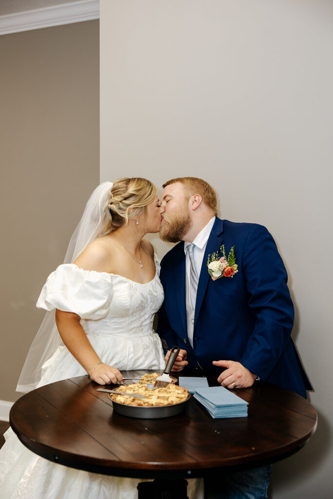 Getting married in their family backyard, having a pie-off during their reception (literally every pie was DELICIOUS), and even having cute parasols for the wedding party — a dreamy dreamy day!! Anddd to top it all off, they got to end it all with delicious food under a beautifully decorated pavilion with all their friends and family in tow.