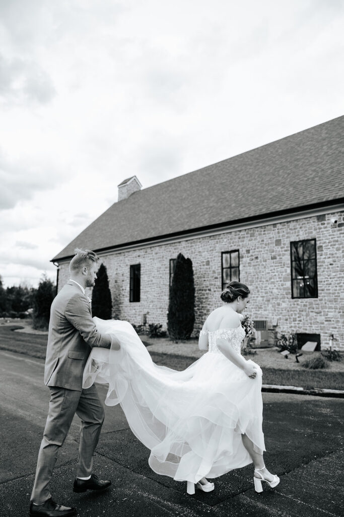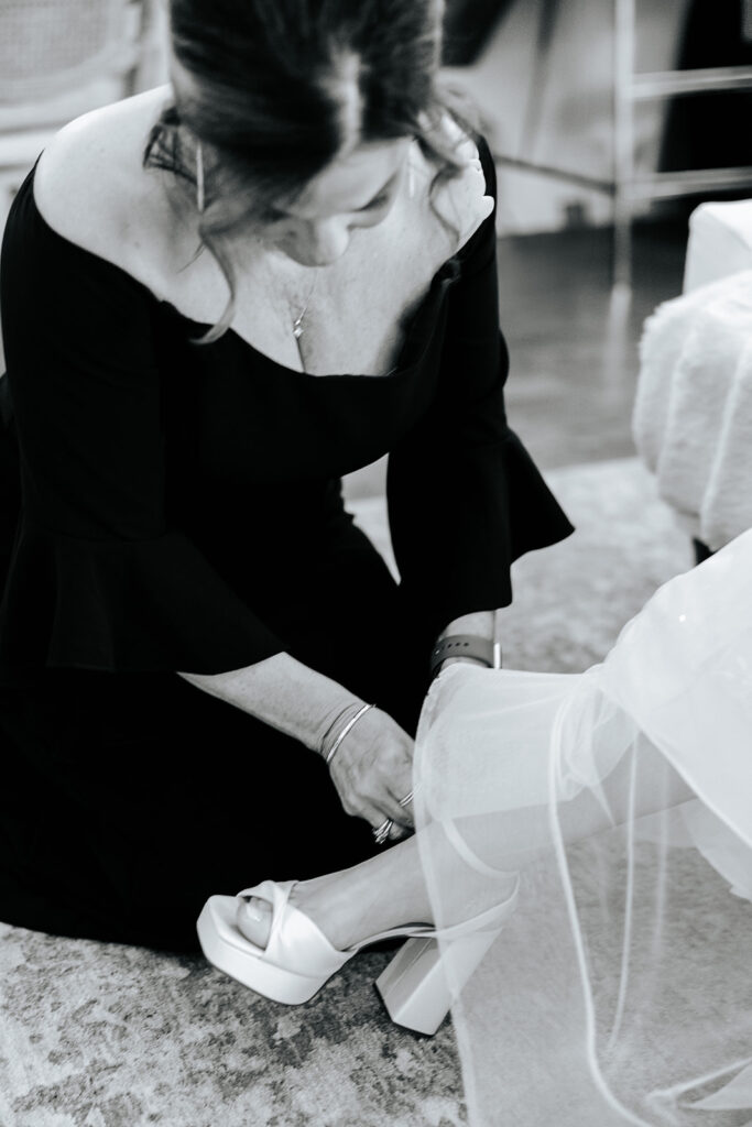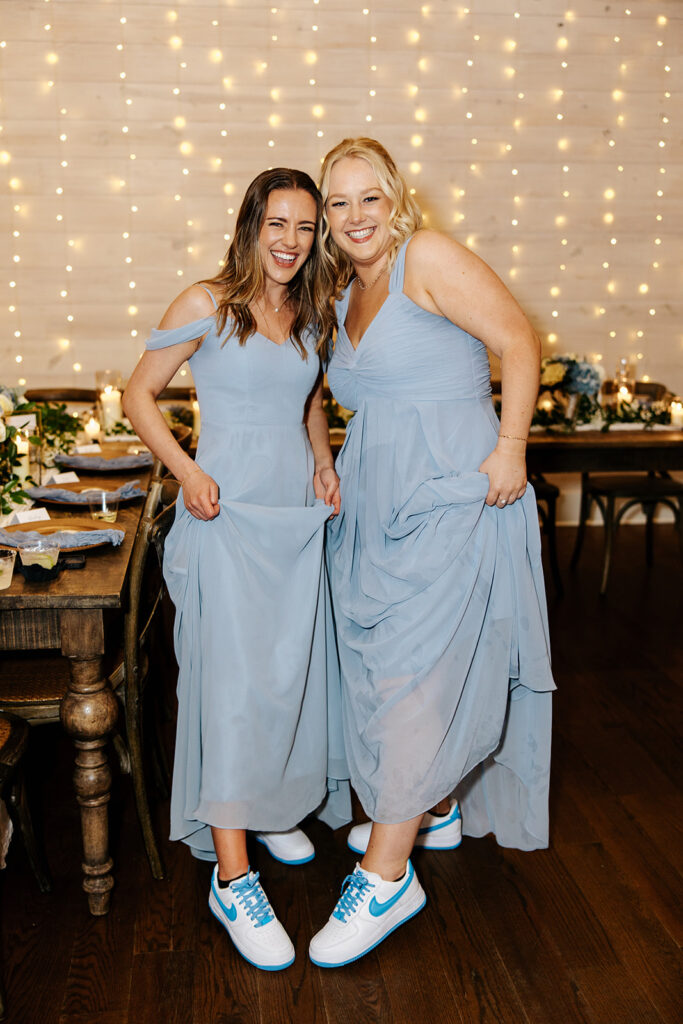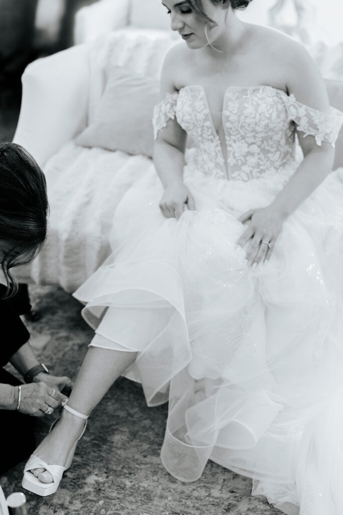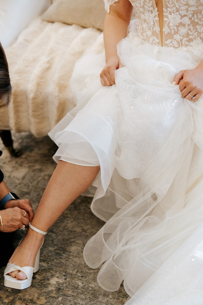 These high school sweethearts GOT MARRIED. I’m simply still not over it and just how intentional every part of their day was — they really got to prioritize being in the moment and spending time with their guests. It was a beautiful day to behold – it was windy and full of happy tears and emotional moments and a dance floor that truly never stopped and ended with the most adorable reception shoes for everyone in the wedding party and our favorite new husband and wife duo!